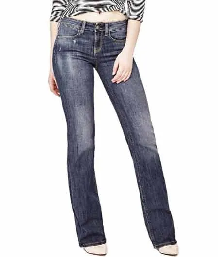 NUOVA COLLEZIONE 2018. Jeans donna Guess art. W81A63D2ZB0 modello Bootcut con gambale dritto e leggermente a imbuto sotto, 5 tasche, vita regolare. Chiusura con bottone e zip. Patch in metallo e applicazione di piccole borchie sul retro. Il jeans, da sempre must have di ogni tipo di outfit, è un capo che non può mancare nel tuo guardaroba per completare il tuo outfit. Vestibilità regolare. Composizione: 92% cotone, 7% poliestere, 1% elastan. Marca: Guess.