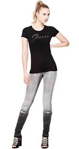 NUOVA COLLEZIONE 2018. Jeans Guess Donna articolo W81A27D2ZU0 modello jegging con chiusura cerniera lampo e bottone. Jeans vita bassa con gamba super stretta con il fondo a tubo aderente alla caviglia con effetto vintage sul fondo. Il tessuto รจ elasticizzato al tatto morbidissimo per una maggiore comoditร e aderenza.Il particolare lavaggio va a sfumare dal grigio chiaro a grigio scuro. Questa รจ una caratteristica voluta sul prodotto che lo rende ancor piรน particolare. Vestibilitร slim. Composizione: 98% cotone, 2% elastan. Marca: Guess.