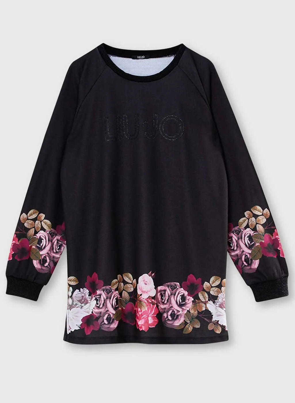 Liu-jo Maxi felpa chiusa. Maxi felpa chiusa nera con motivazioini floreali sulle maniche e sul giro vita, con polsini e morbida vestibilitร .