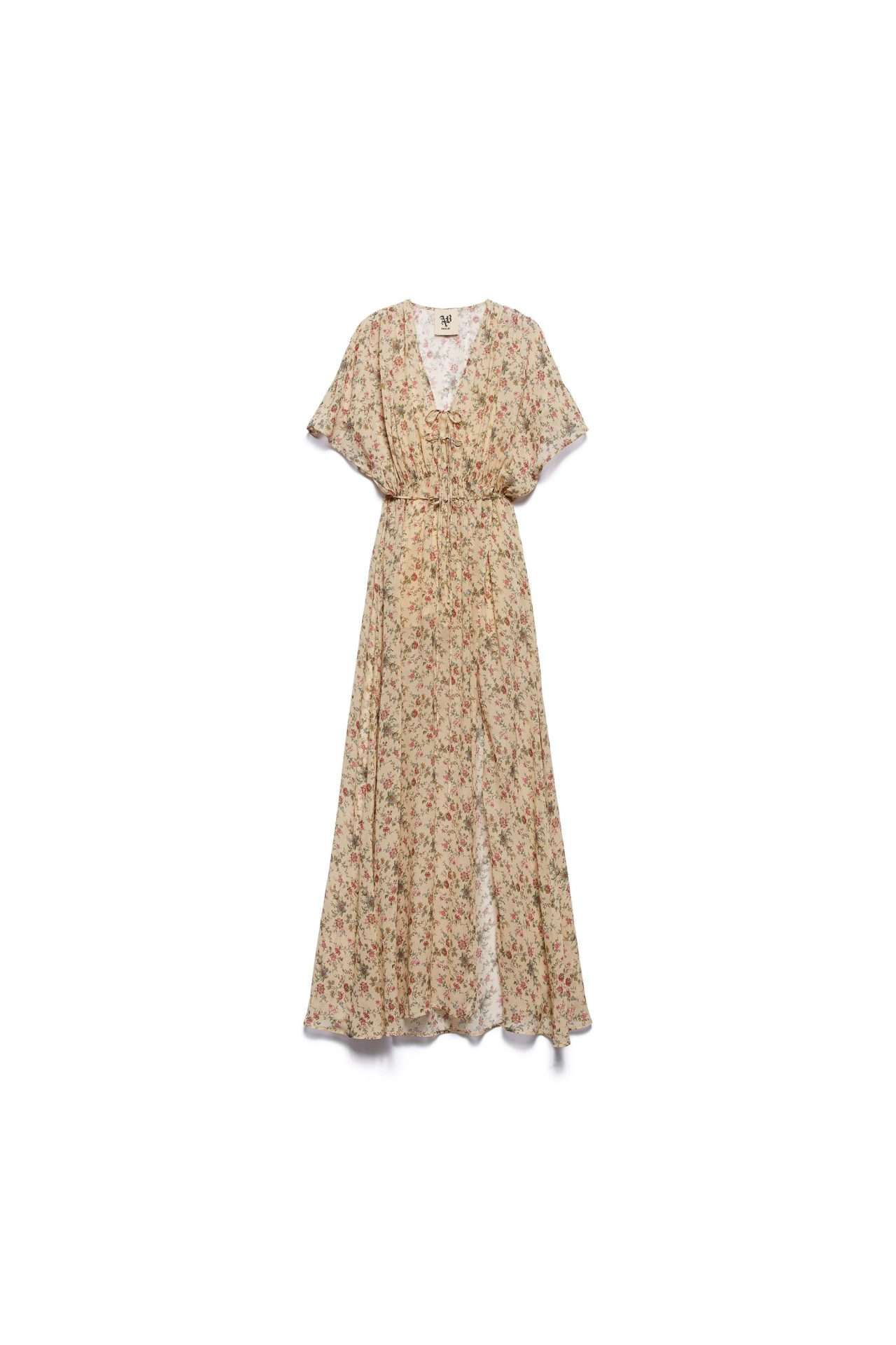 Fluttuante e romantico, l’abito lungo Marlene con stampa floreale cattura l’essenza della femminilità. La silhouette fluida e raffinata è definita dalle maniche a kimono, il laccetto in vita regolabile e lo spacco laterale. Perfetto per interpretare le atmosfere dell’estate con una nota timeless.
