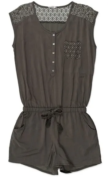 Tutina donna Losan art. 812-7015AB girocollo, manica corta in voile e chiusura 5 bottoncini. Comode tasche laterali e coulisse regolabile in vita con laccetti con nappine. Dettaglio iperfemminile che arricchisce il capo è l’inserto in macramè sulle spalle e il taschino in macramè. Capo ideale da indossare per un look sbarazzino e di tendenza. Vestibilità regolare. Composizione: 100% viscosa. Marca: Losan.
