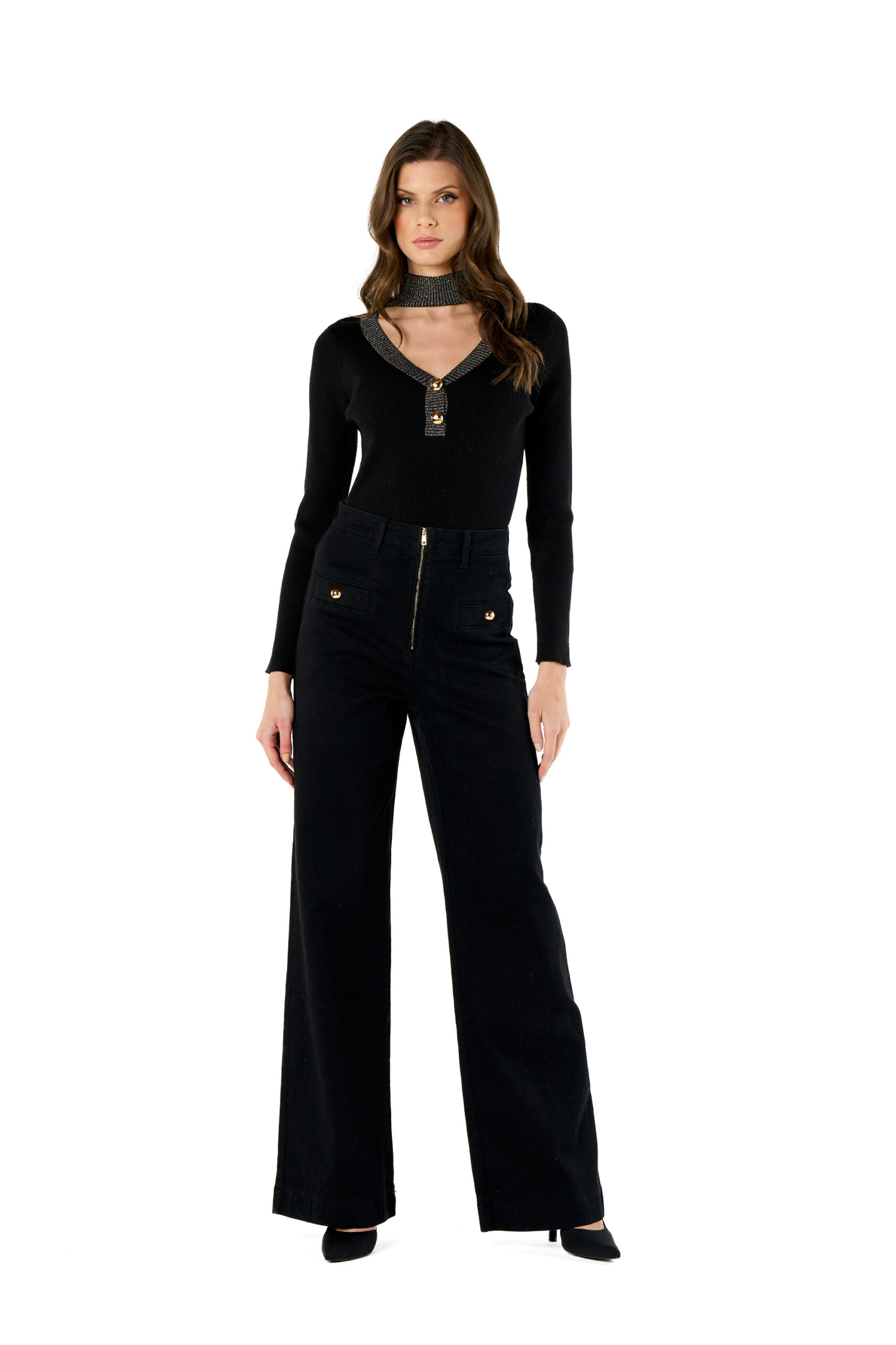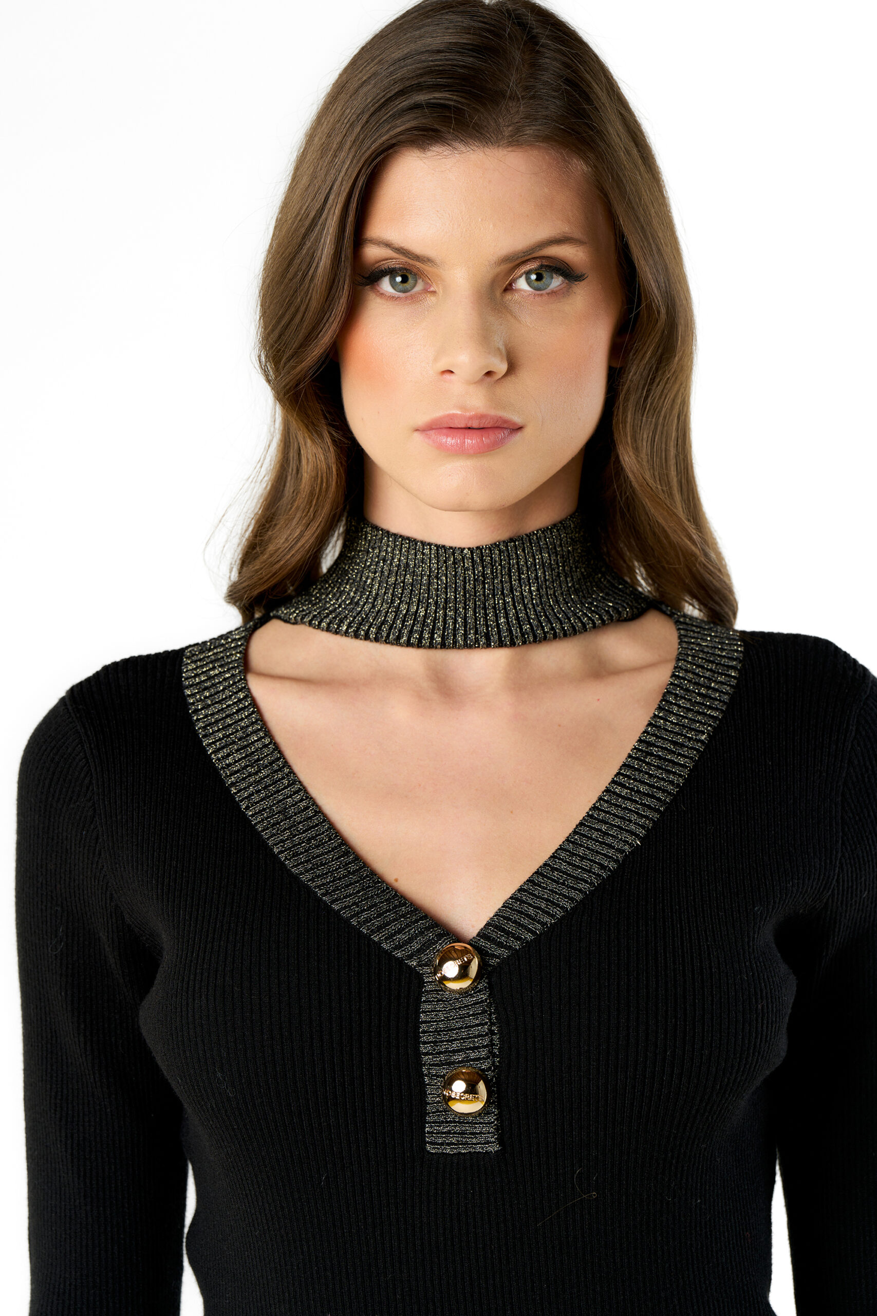 Maglia bottoni collo & scollo a V