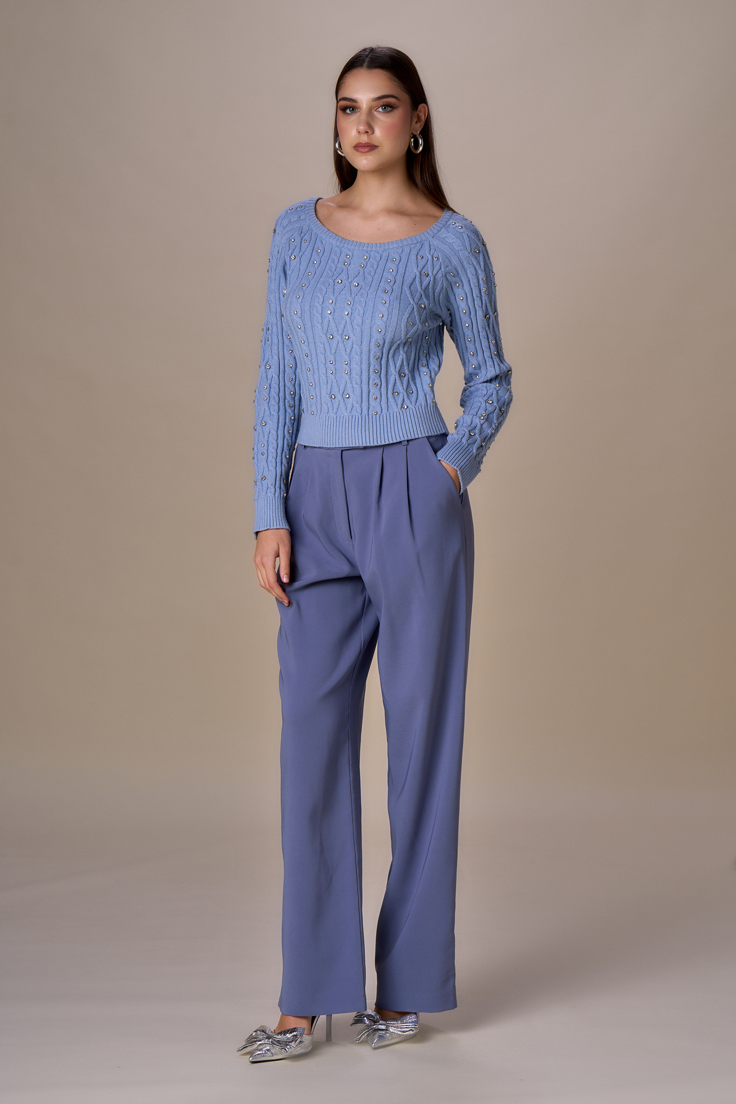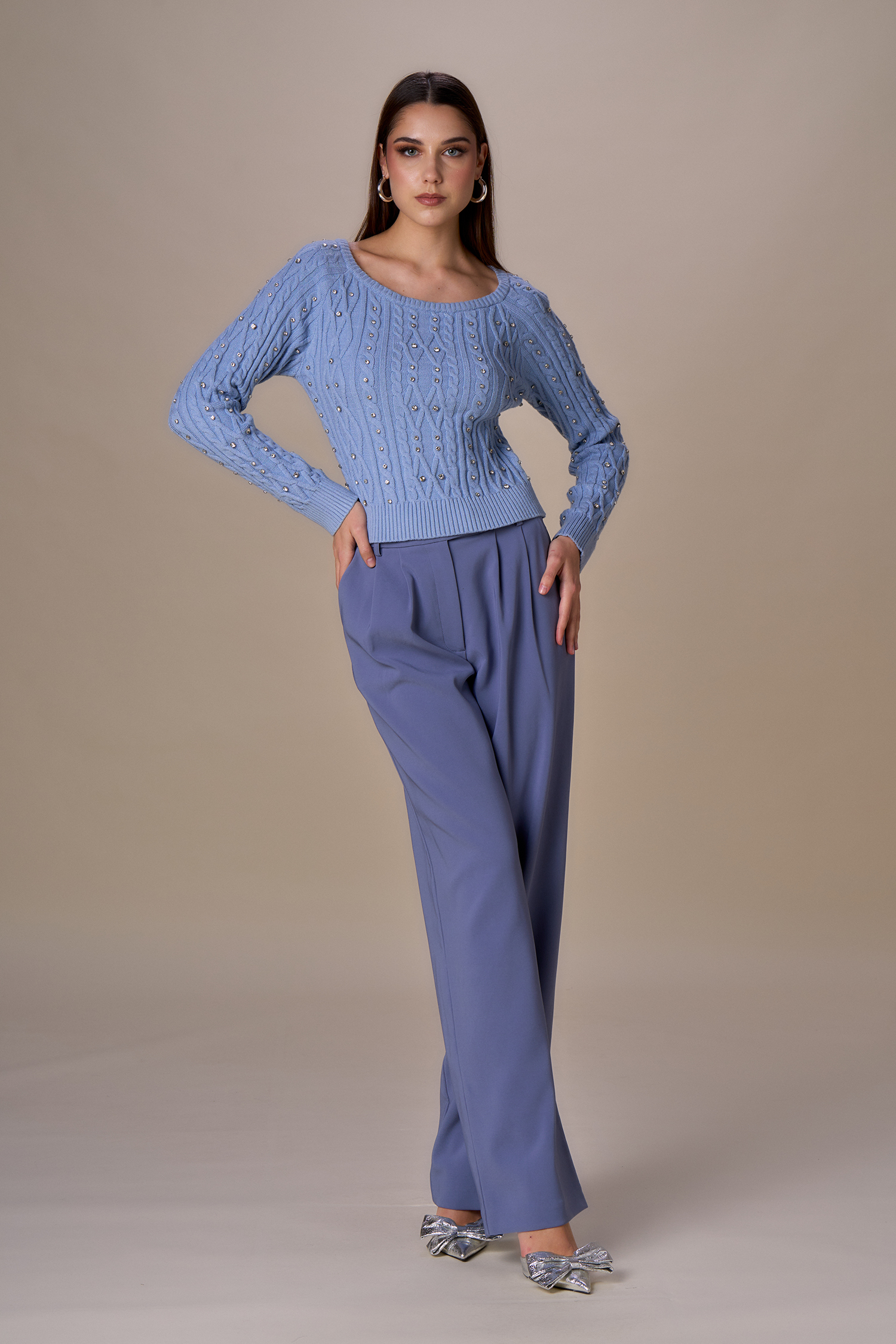 Maglia girocollo trecce diamanti
