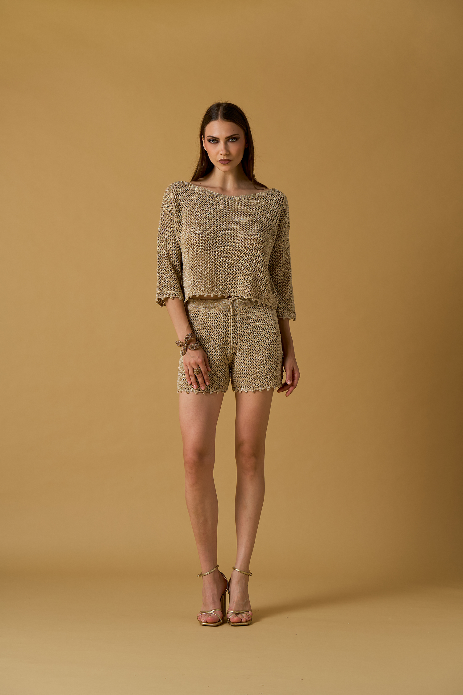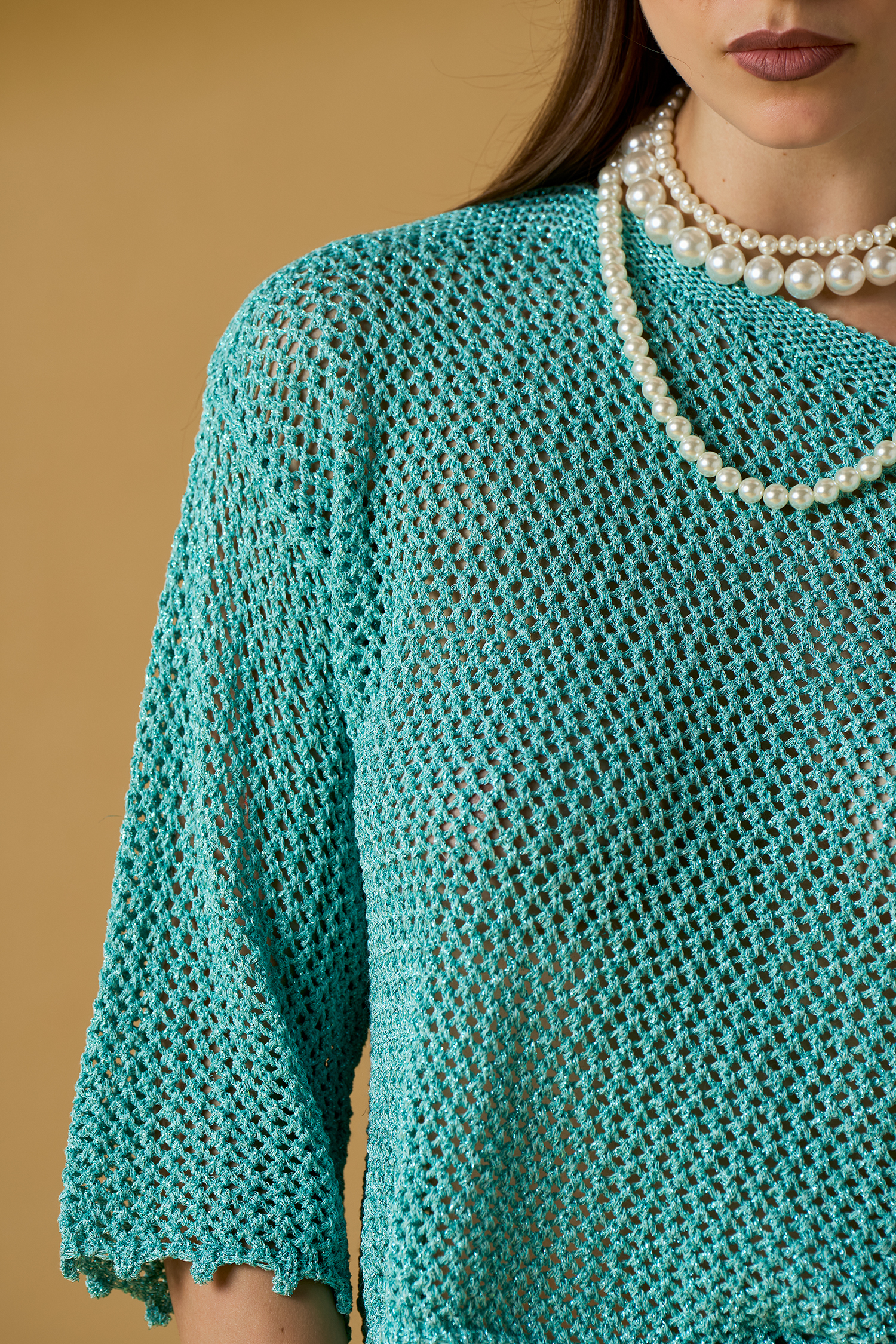 Maglia maniche 3/4 crochet lurex