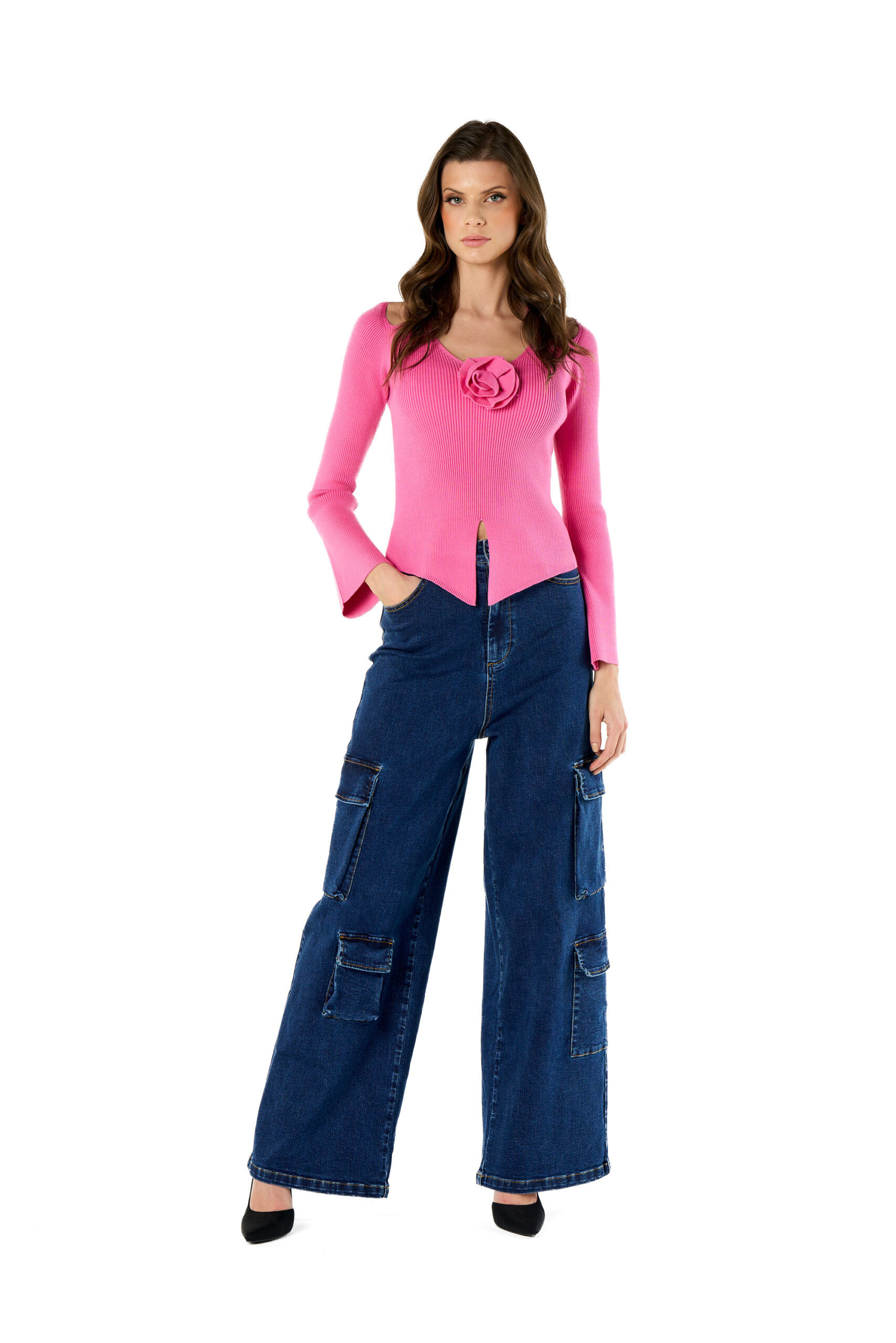 Maglia punte con rosa