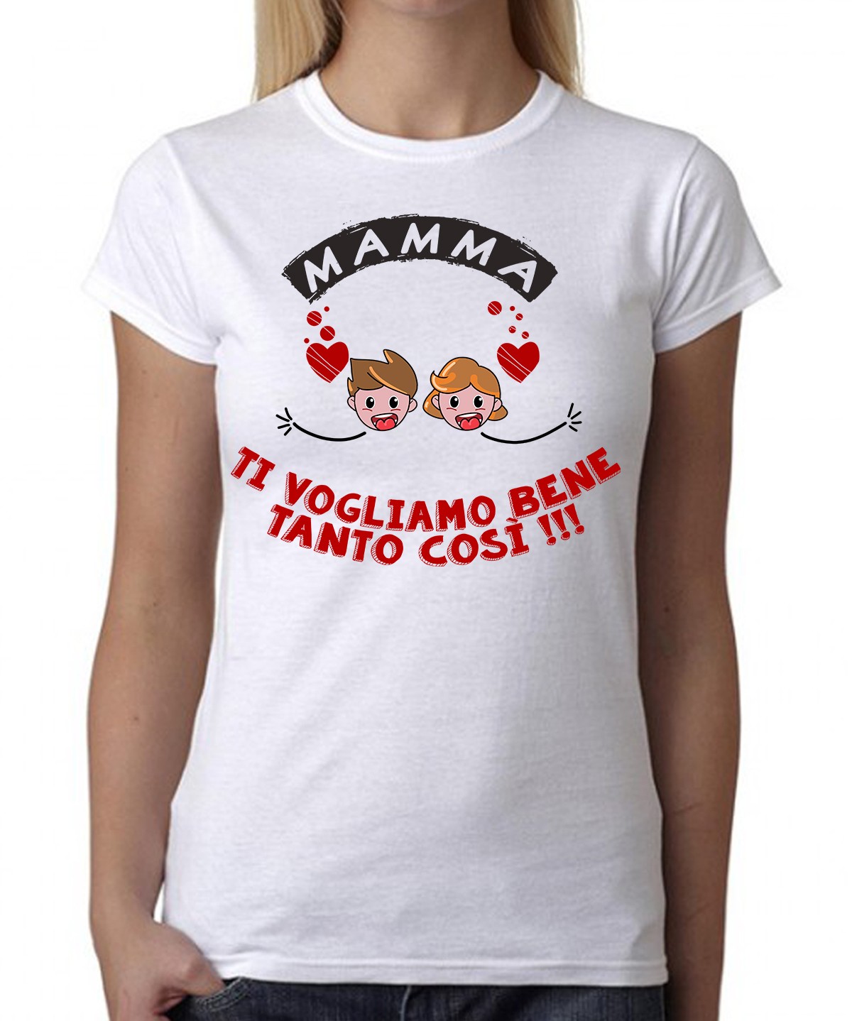 Maglietta Festa della Mamma – Maschietto e Femminuccia Mamma Ti Vogliamo Bene Tanto Così – Festa della Mamma – Idee Regalo Mamma – Regalo Mamma Originale