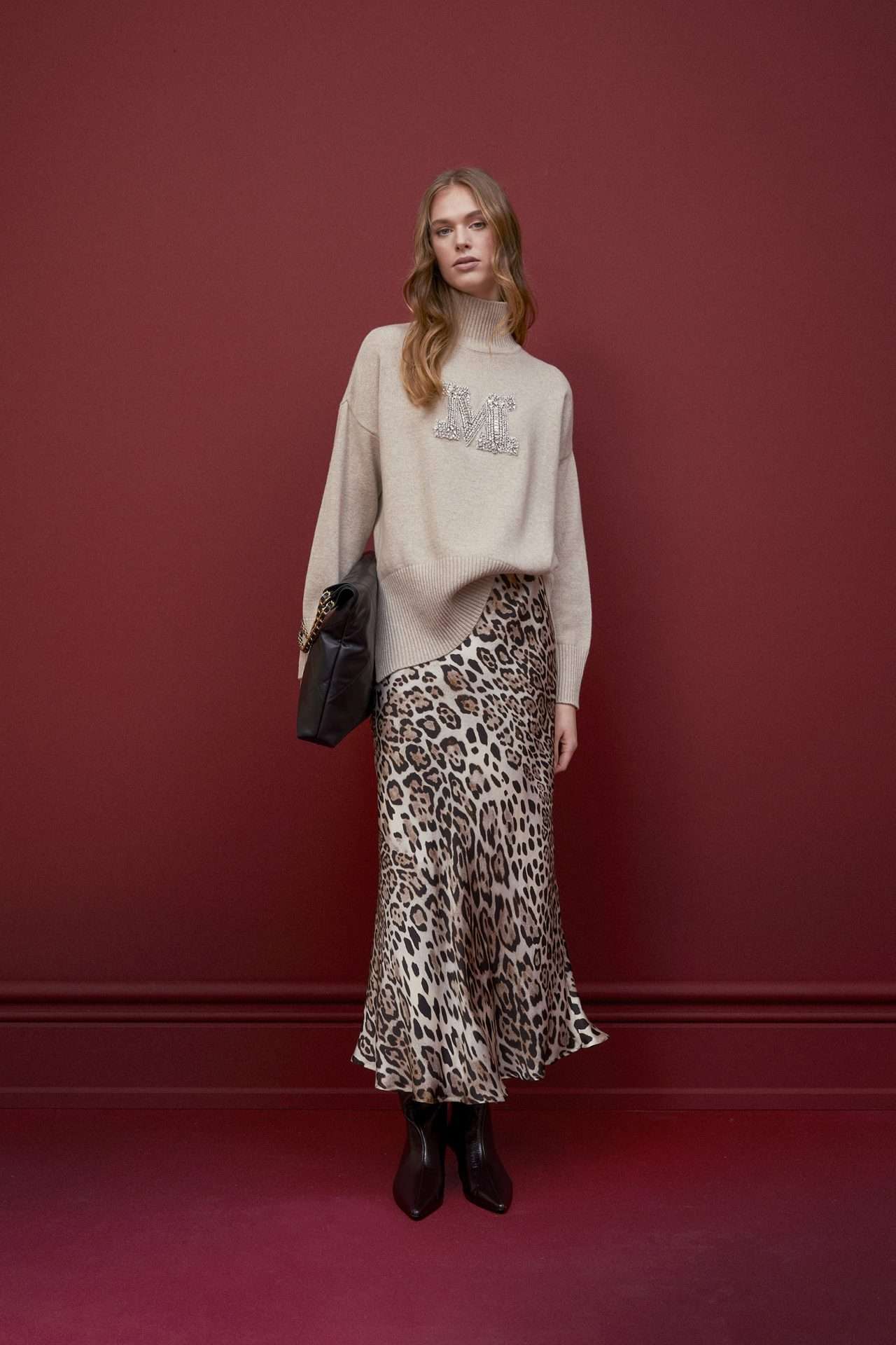 Maglione mezzo con collo con lettera M in strass