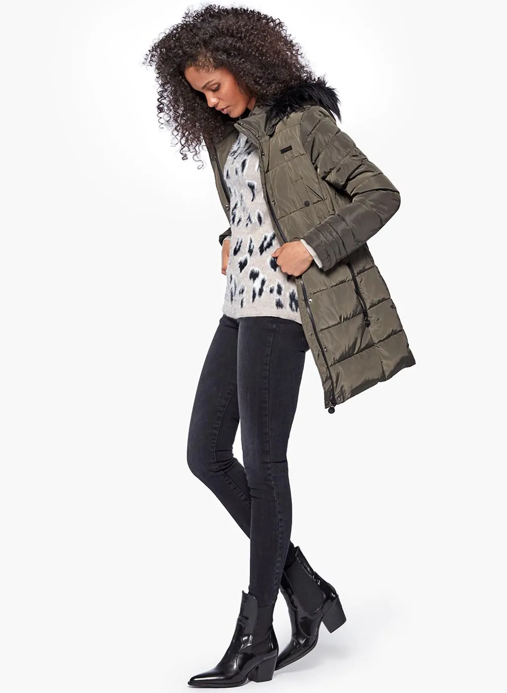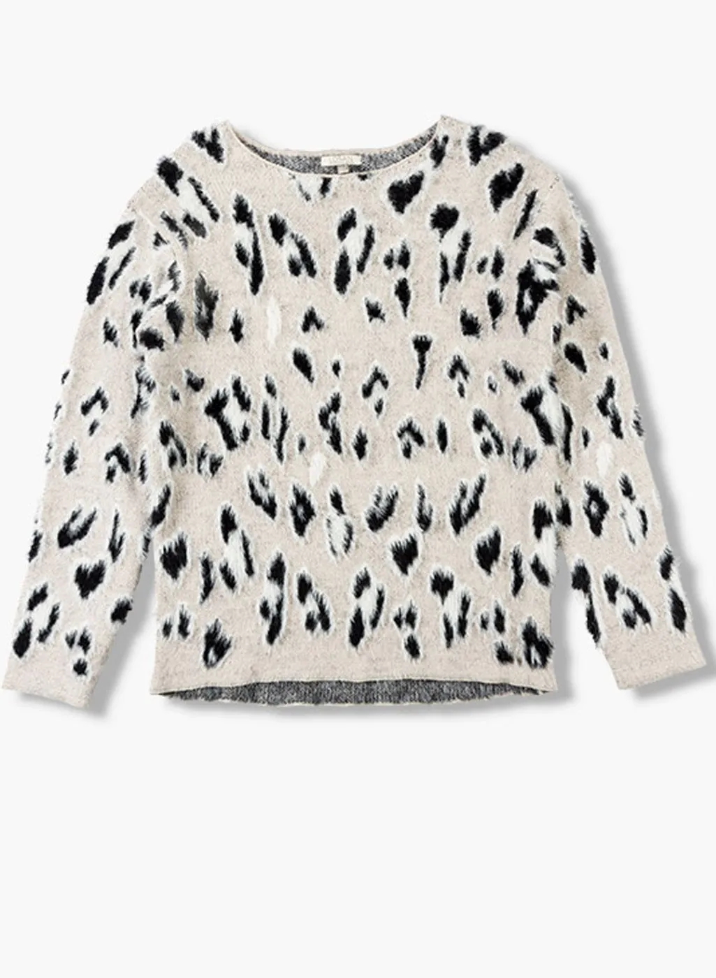 Maglione Donna Losan art. 922-5012AA. Maglioncino a girocollo con cucitura spalla scivolata,manica a pipistrello e vestibilità morbida con parte posteriore arrotondata. Caldo e morbido tessuto in ecopelliccia ideale da indossare nei periodi più freddi con fantasia maculata. Composizione: 74% poliamide 26% Acrilico. Marca: Losan.