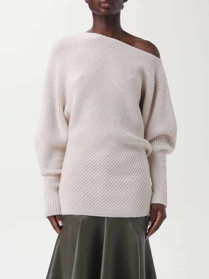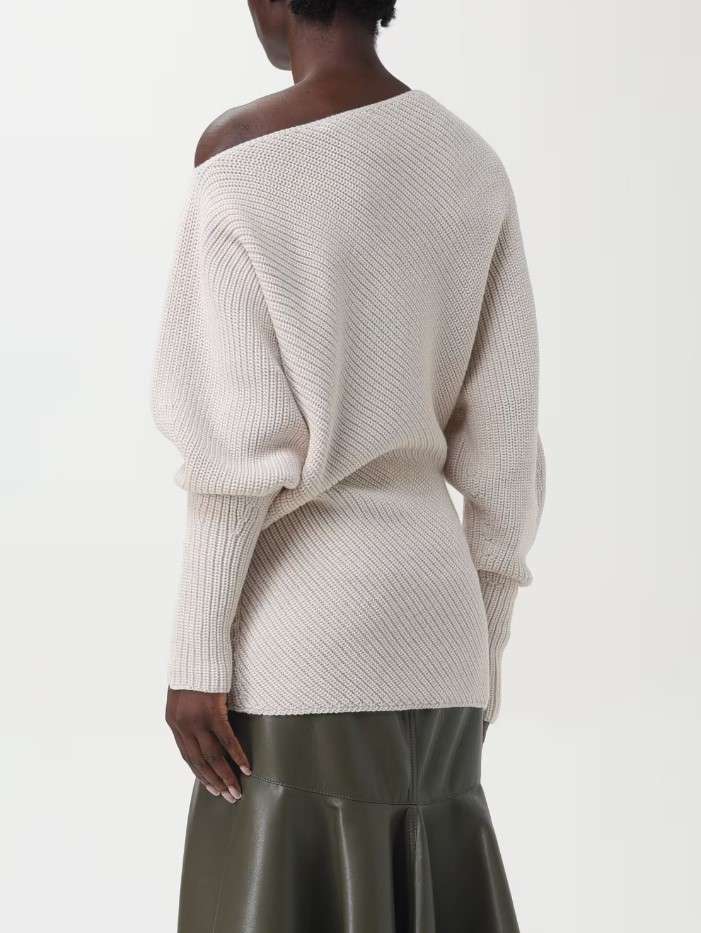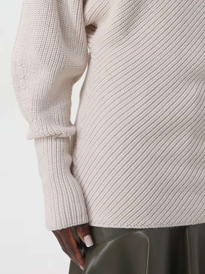 Maglioncino in misto lana che avvolge la silhouette con un fit morbido e rilassato. Lo scollo è asimmetrico. La maniche sono voluminose e aggiungono un tocco romantico al design.