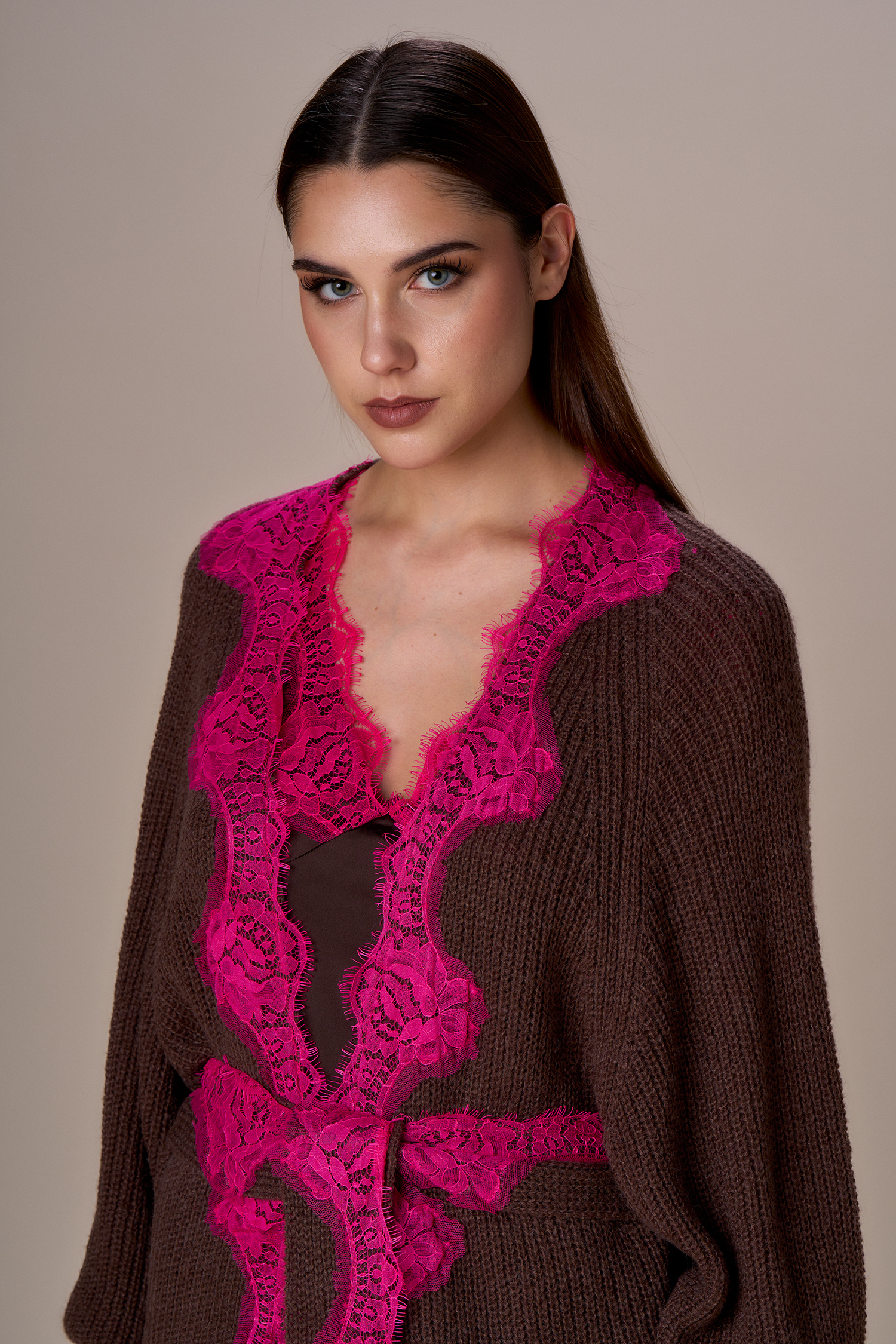 Maxi cardigan con pizzo