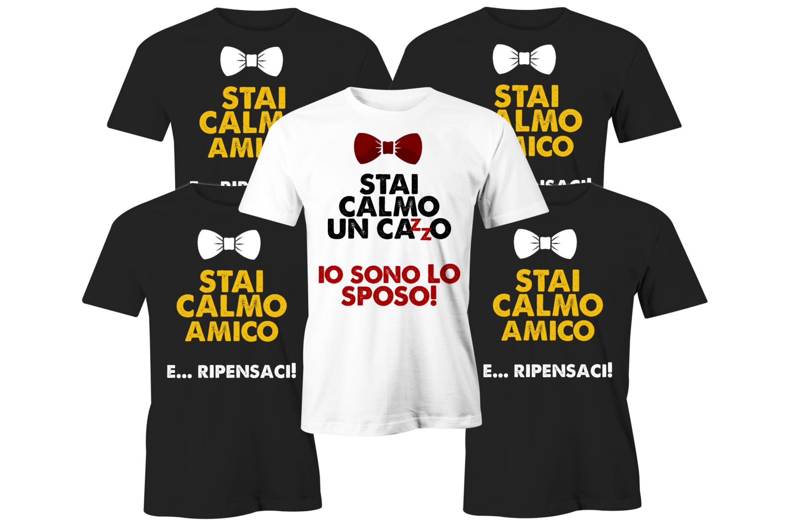 Pacchetto Tshirt Addio al Celibato – Stai Calmo un Ca..o mi sto per Sposare – Sposo – Amico Ripensaci – Magliette Coordinate – Amici dello Sposo – Festa Celibato