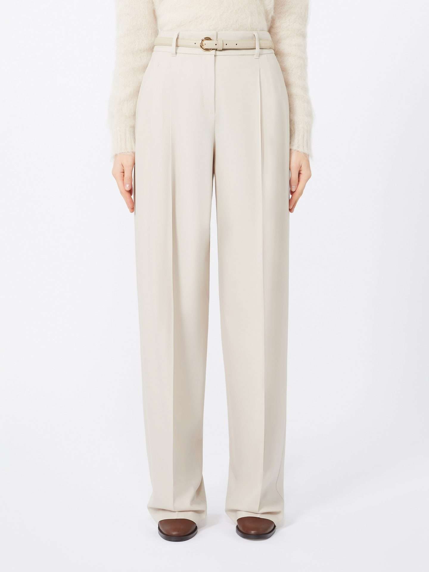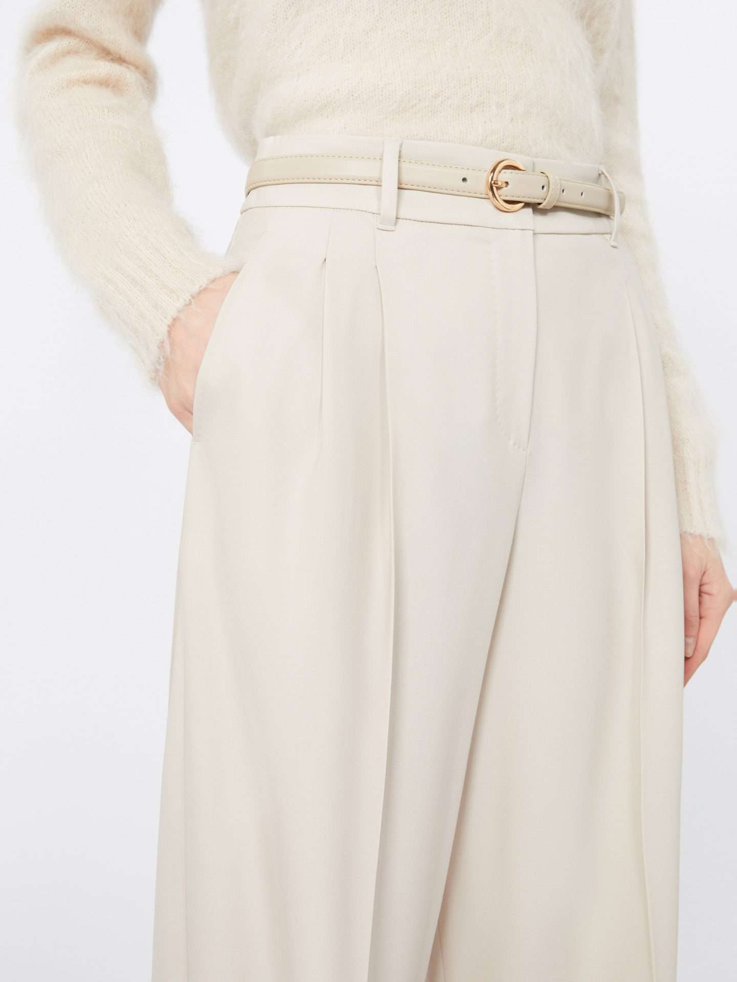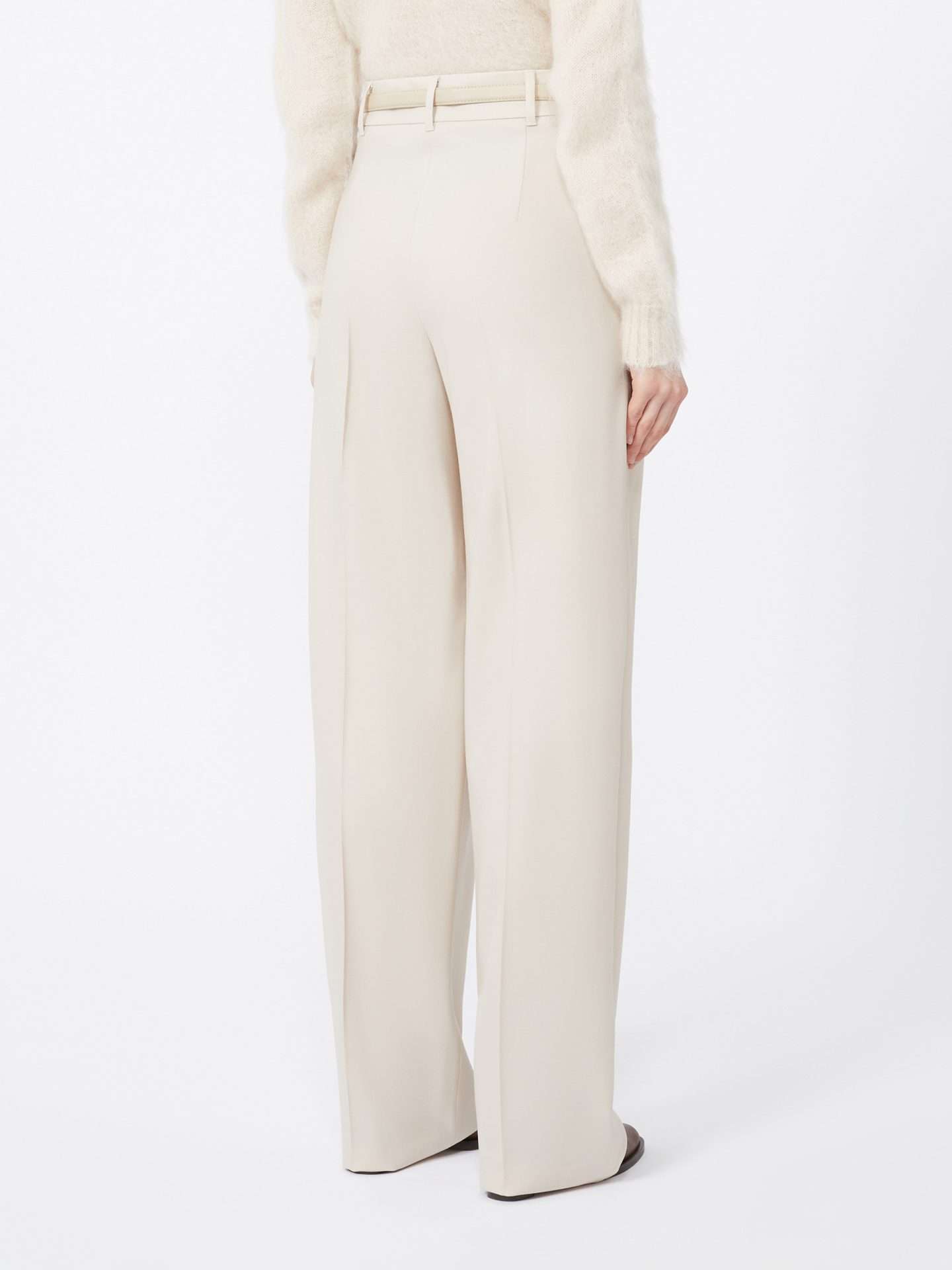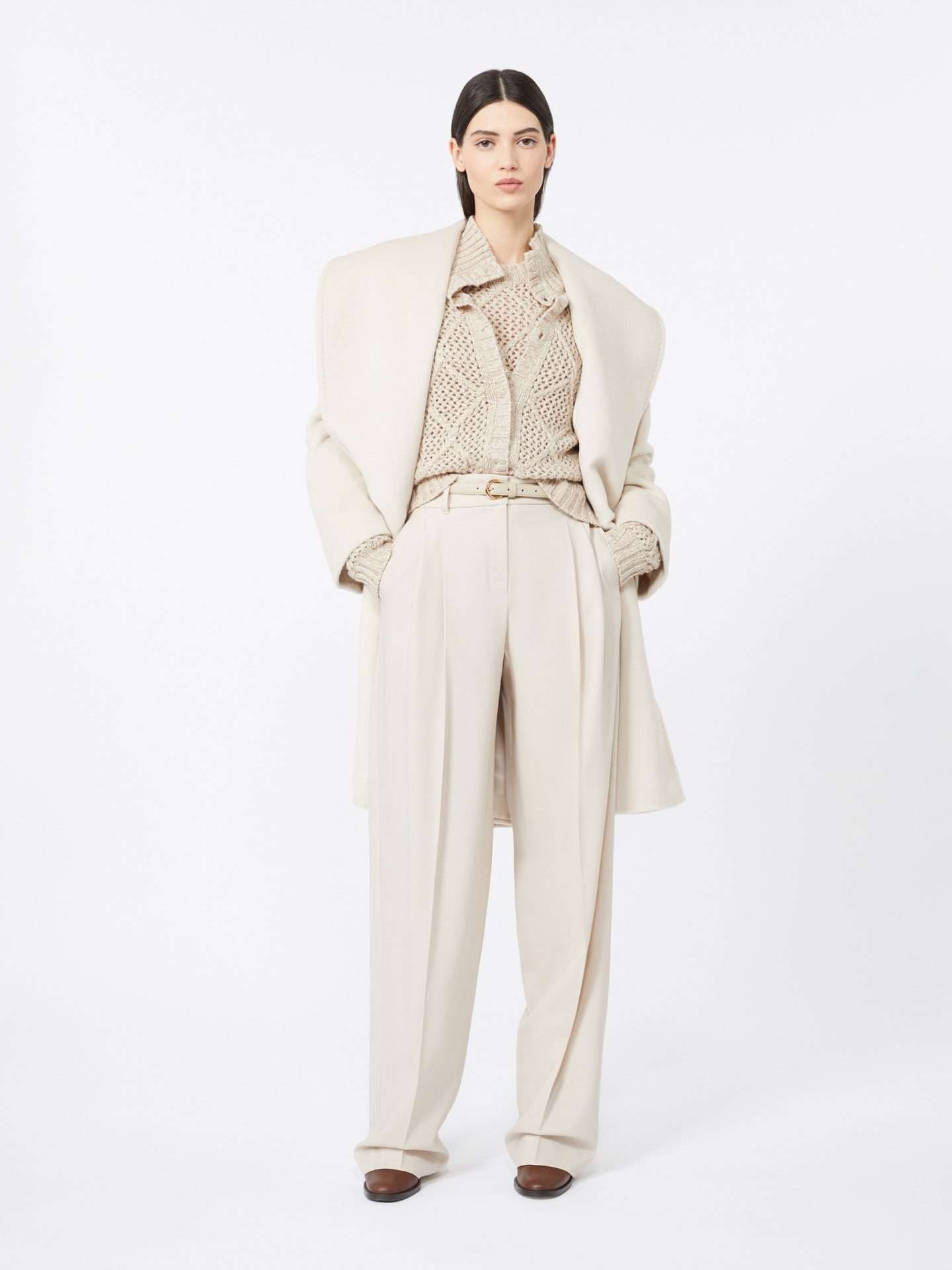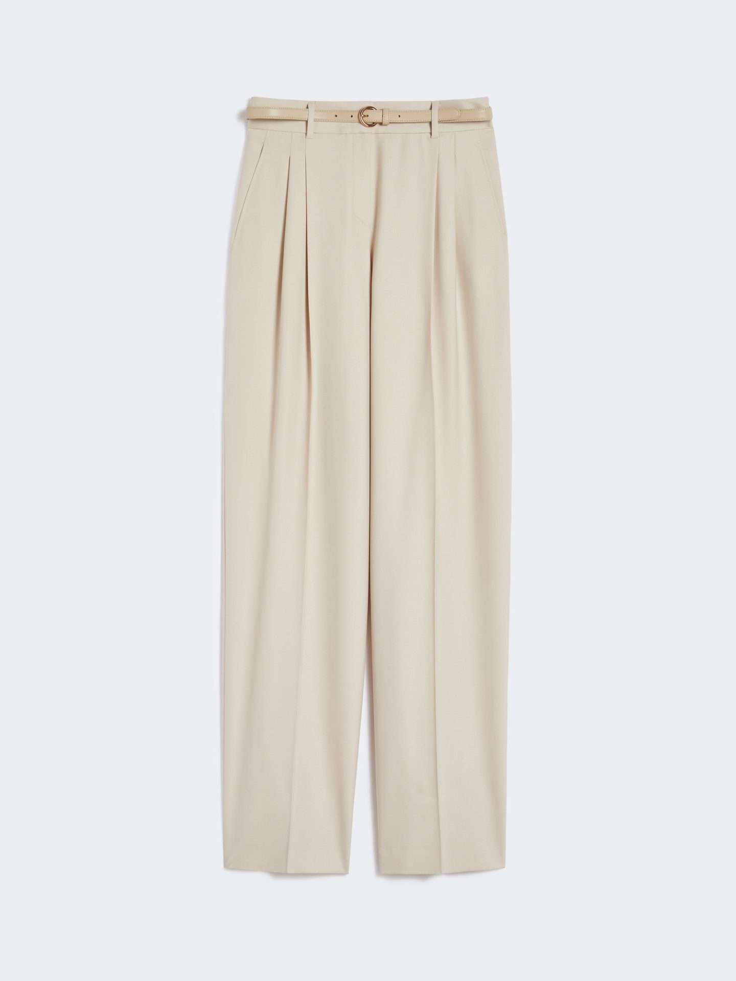 Pantalone maschile realizzato in pregiata saglia di lana con doppia pinces in vita sul davanti. Silhouette scivolata con gamba leggermente più stretta sul fondo, per un look versatile.