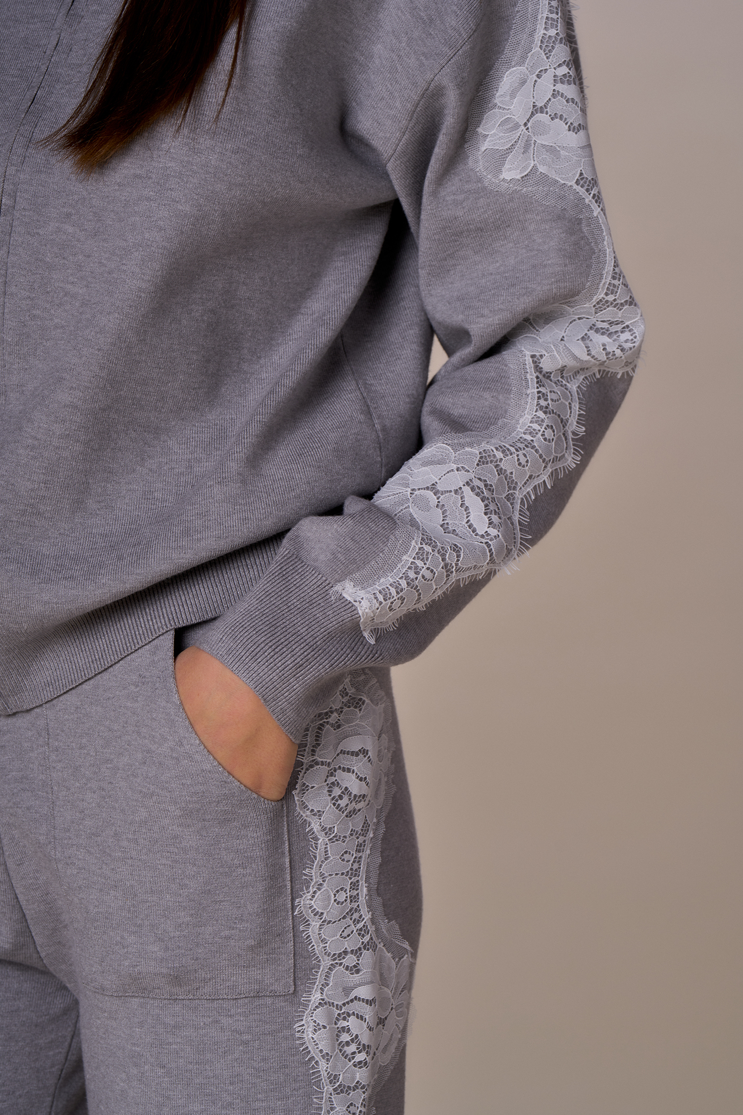 Pantalone gym maglia con pizzo