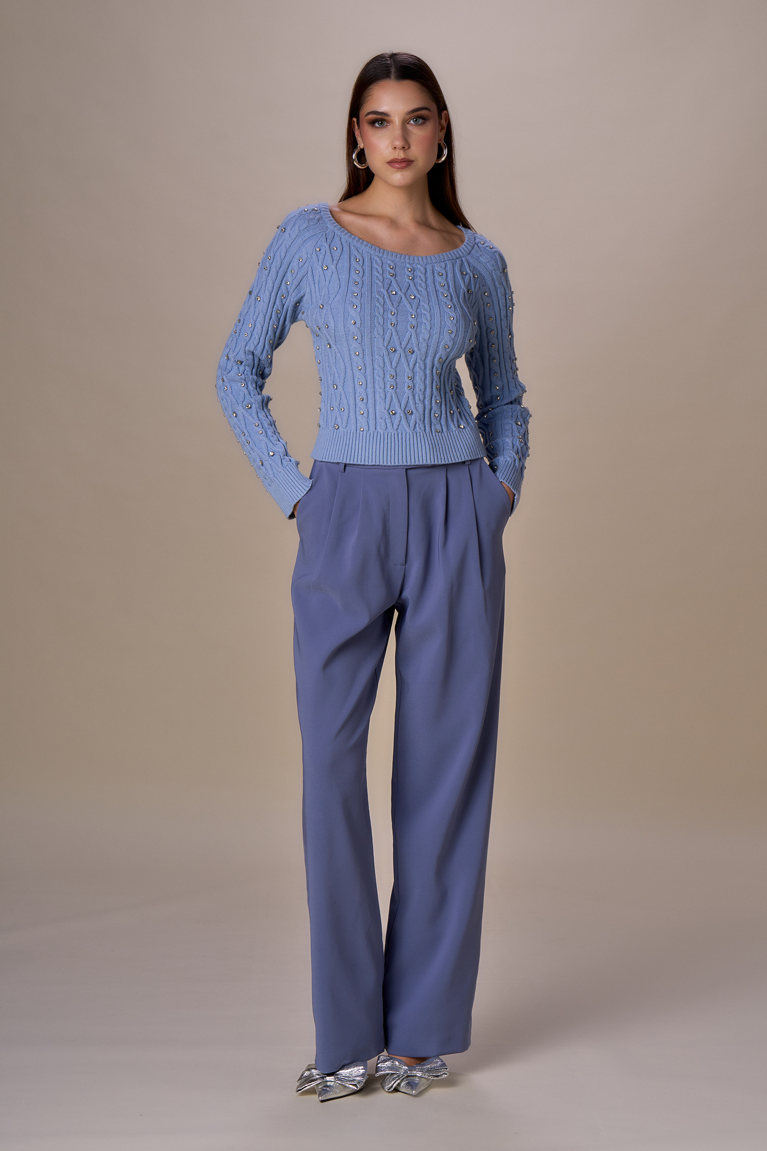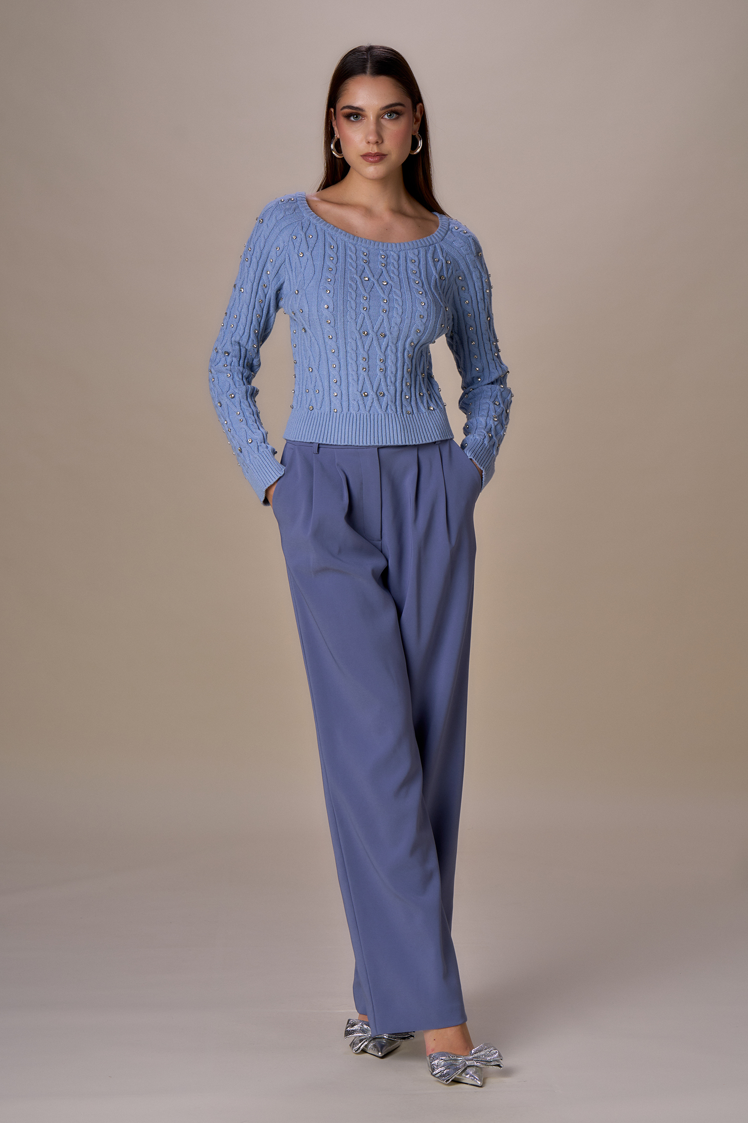 Pantalone largo con pinces