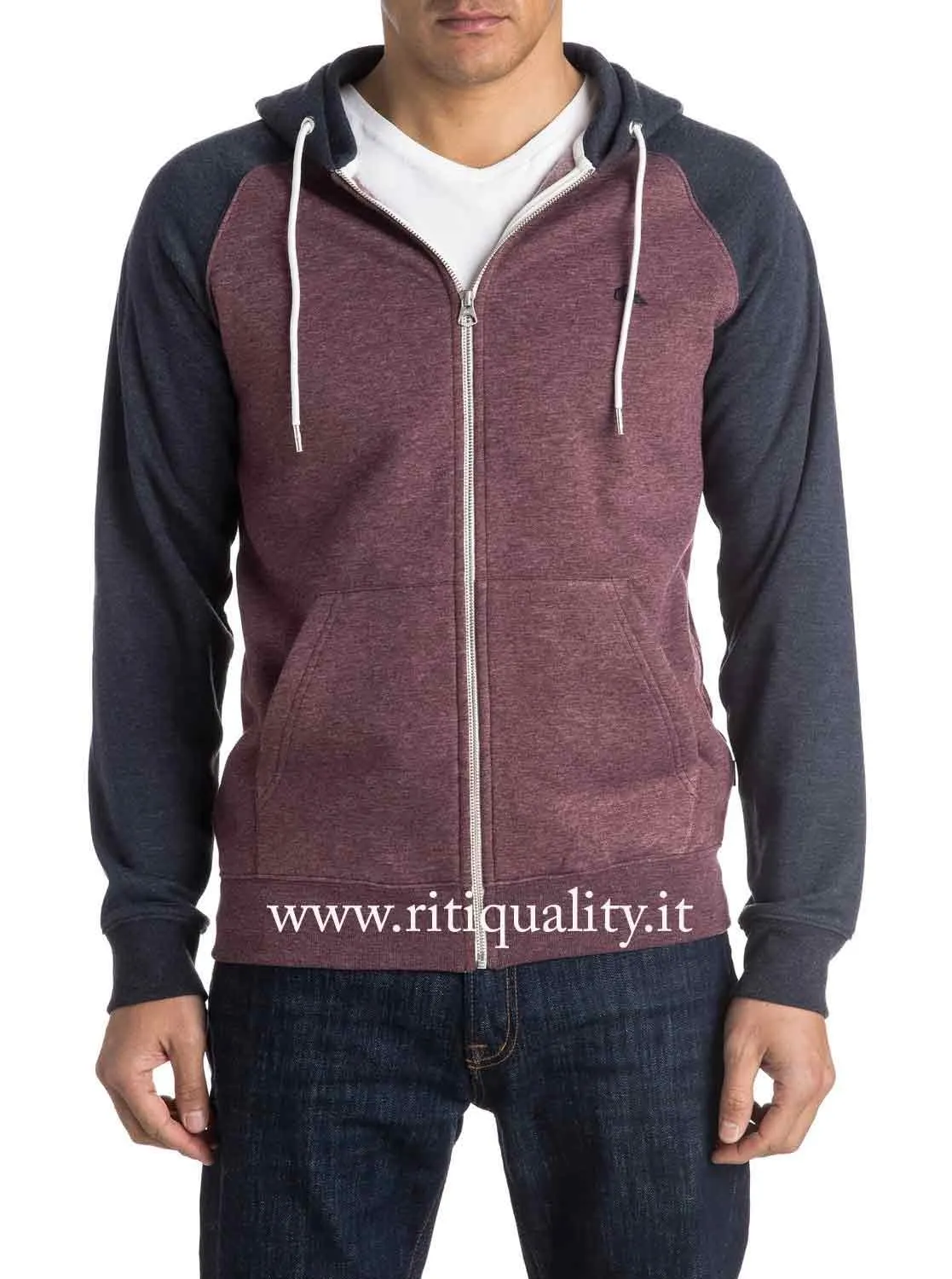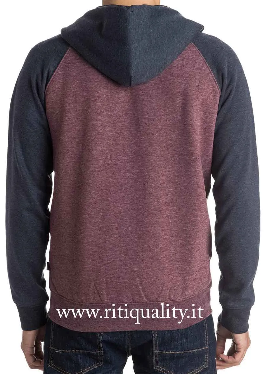 Felpa Uomo Quiksilver EQYFT03429 bordeaux . Felpa girocollo, pile all’interno , chiusura zip, 2 tasche, cappuccio foderato in tessuto regolabile con lacci, polsini e fondo a costine. Questo capo è arricchito da particolari inserti sulle maniche e dal cappuccio di colore blu. Logo ricamato. Vestibilità regolare. Composizione: 53% cotone, 47% poliestere. Marca: Quiksilver.