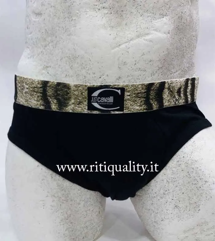 Slip Uomo Roberto Cavalli art. 1603 modello midi in cotone elasticizzato a vita bassa con bordo tigrato. Patch in stoffa Just Cavalli. Composizione: 95% cotone, 5% elastan. Marca: Roberto Cavalli.