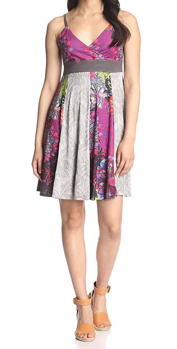 Bellissimo Abito donna Smash art. Tavares Dress con scollatura a V e bretelle ultra sottili e regolabili. Parte superiore con sensuale scollatura ad incrocio spezzato sotto seno e caratteristica gonna ampia per una vestibilitร comoda. A caratterizzare il capo รจ una bellissima fantasiaย multicoloriย su fondo grigio che rende il capo versatile e ideale da indossare in ogni occasione. Vestibilitร regolare.