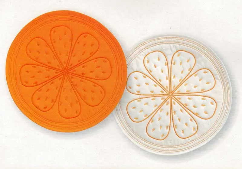 Sottopiatto sagomato art. Citrus confezione da 2 pezzi colore arancio e bianco, tessuto 100% cotone imbottitura 100% poliuretano, marca: Vallesusa.