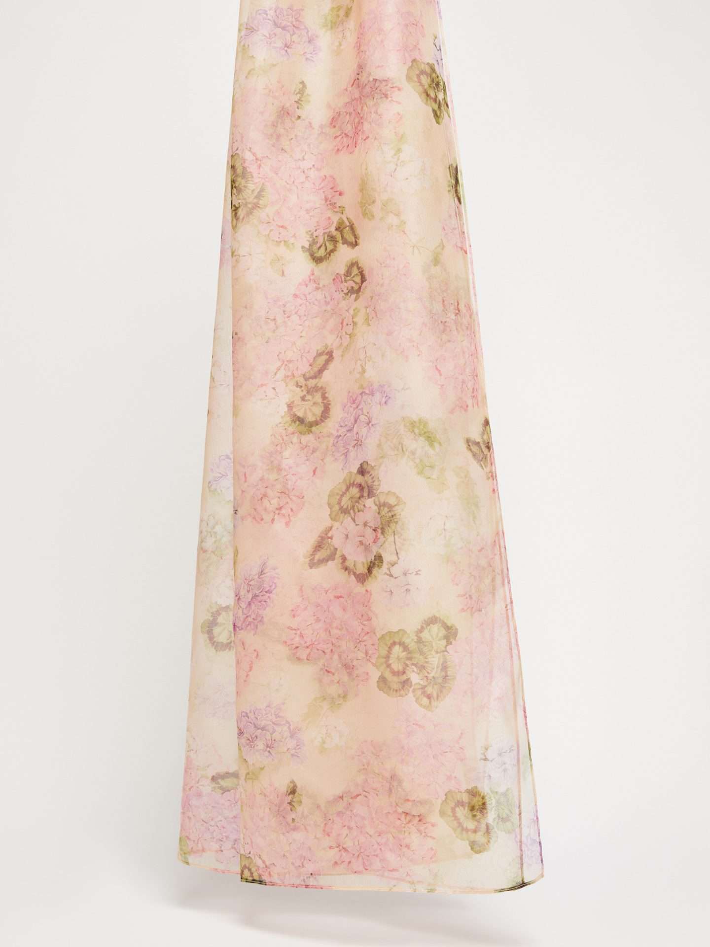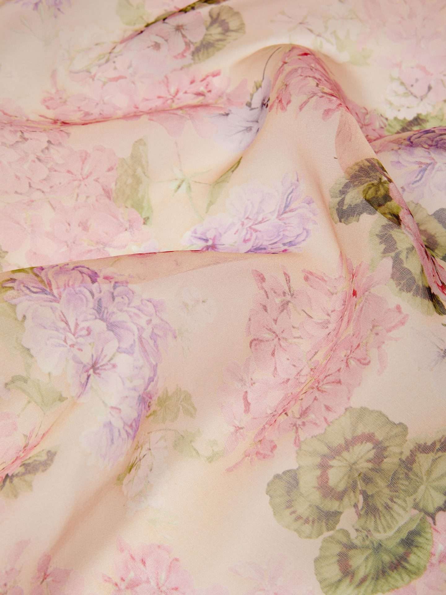 Stola in pregiata georgette di pura seta con motivo stampato all over. Elegante e dal volume avvolgente è rifinita con bordi finemente cuciti. Dimensioni 60 x 220 cm.