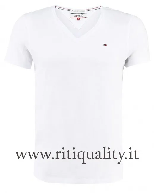 T-shirt uomoTommy Hilfiger. Questa t-shirt con bandiera del marchio sul petto รจ un capo essenziale perfetto da indossare da sola con un denim e arricchirร il vostro outfit con la sua semplicitร . Scollo a “V” con fettuccia a contrasto lungo lo scollo. Logo flag a sinistra. Composizione: 100% cotone. Marca: Tommy Hilfiger. ย
