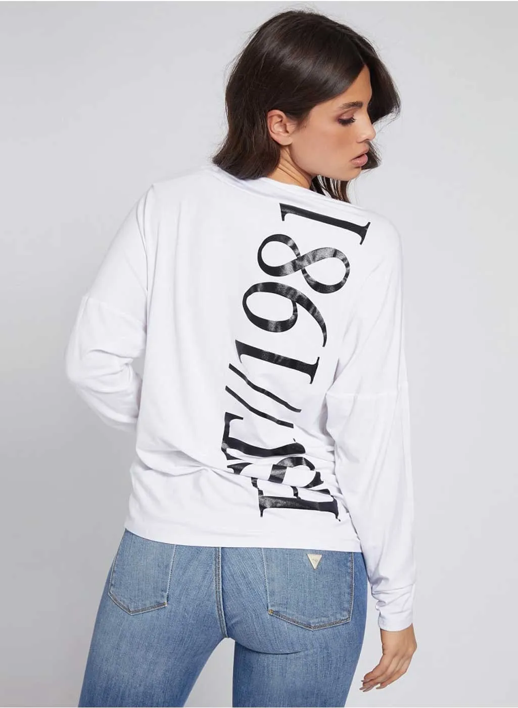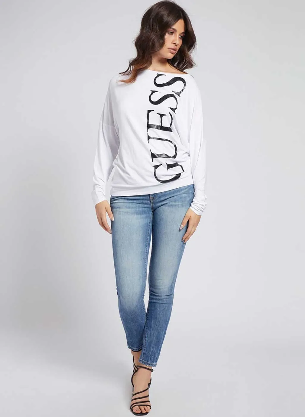 T-shirt donna guess manica lunga art.W1RI0AK68D0, maglia guess con scollatura a barca, tessuto misto viscosa, vestibilitร comoda, lavaggio consigliato 30ยฐ, marca Guess.