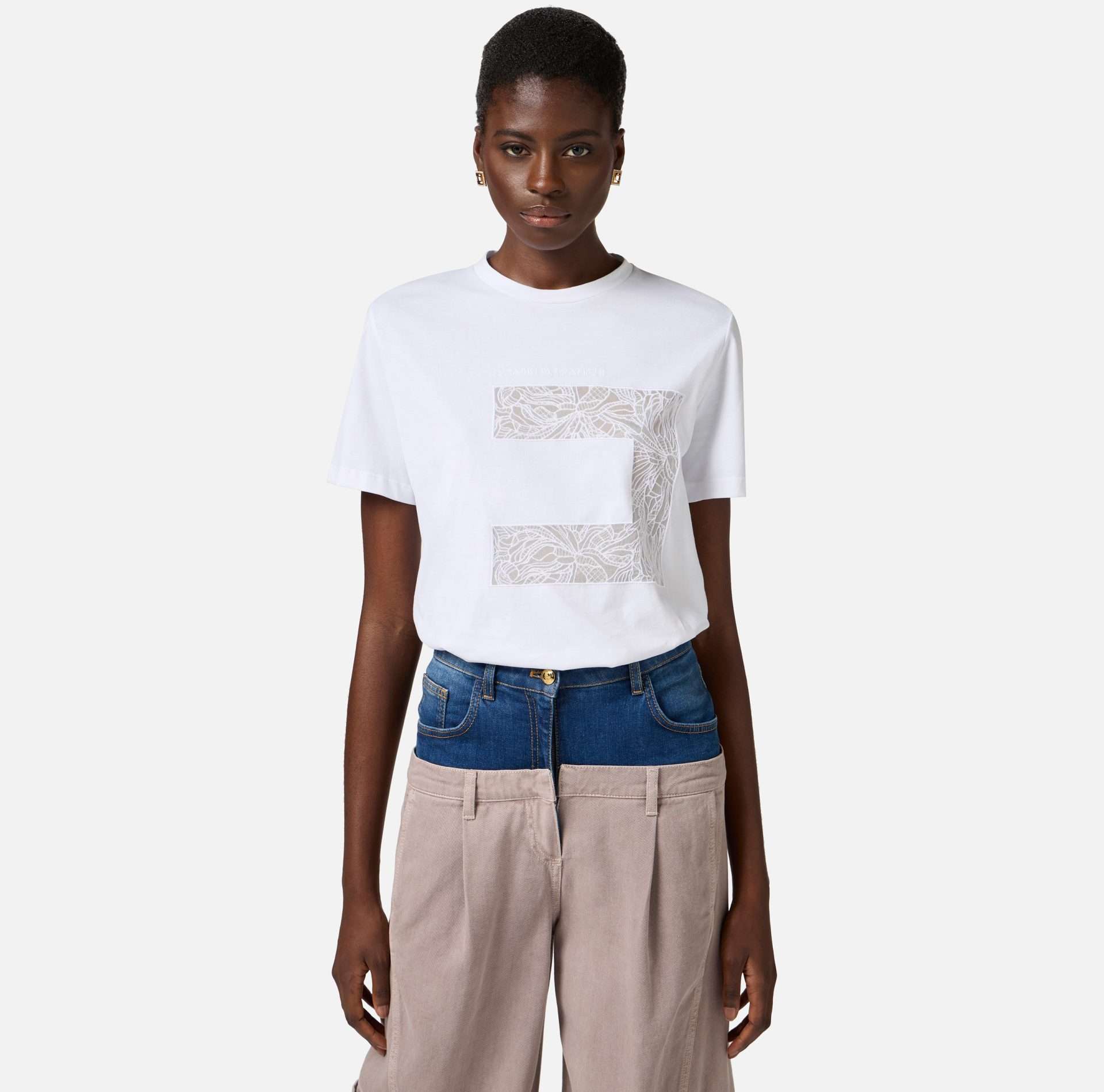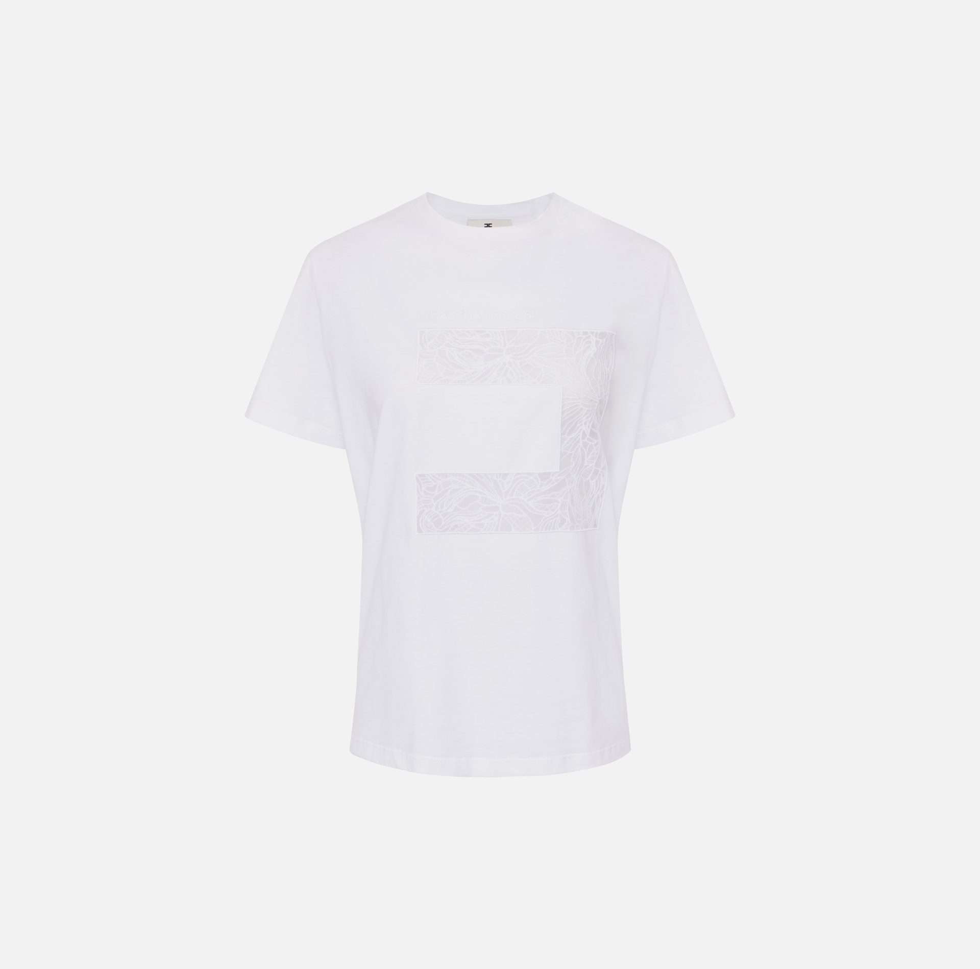 Maglietta a maniche corte in jersey con vestibilità regular. Il macro logo in voile ricamato decora il davanti e il retro del capo con un tema floreale.