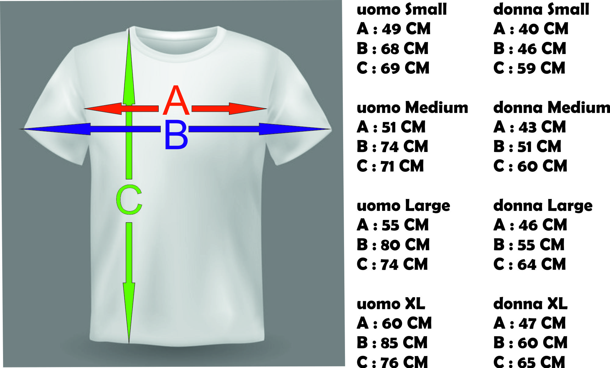 Tshirt stampata sul fronte. Bianca sul Retro. Lavabile in lavatrice.