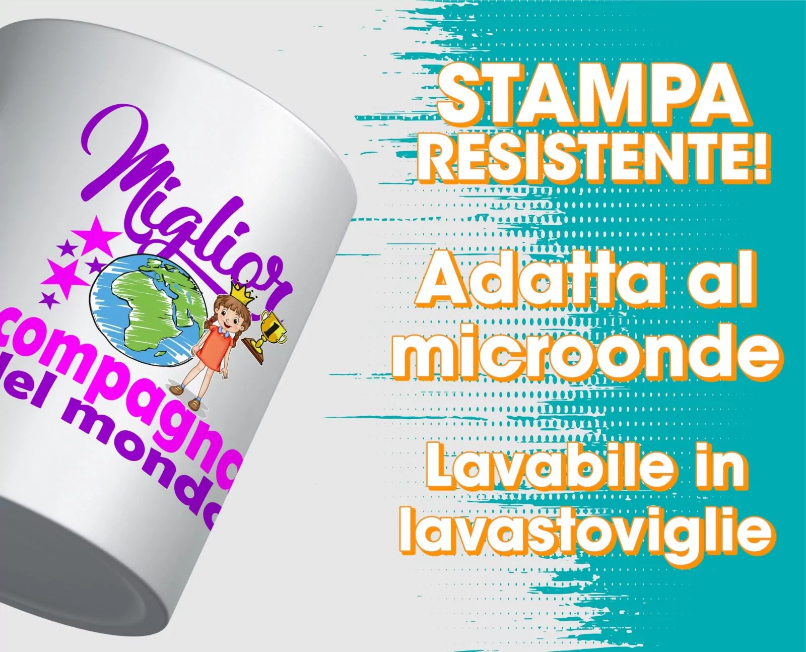 Tazza in ceramica realizzata in sublimazione , con stampa All Over , resistente al microonde e ai lavaggi in lavastoviglie , con pratico manico che facilita la presa .