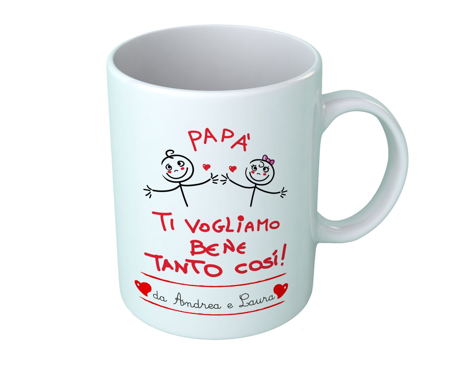 Tazza Festa del Papà [PERSONALIZZABILE] – Maschietto e Femminuccia Papà Ti Vogliamo Bene Tanto Così – [PERSONALIZZA NOMI] – Idee Regalo Festa del Papà – Tazza Festa Papà – Idea Regalo Papà