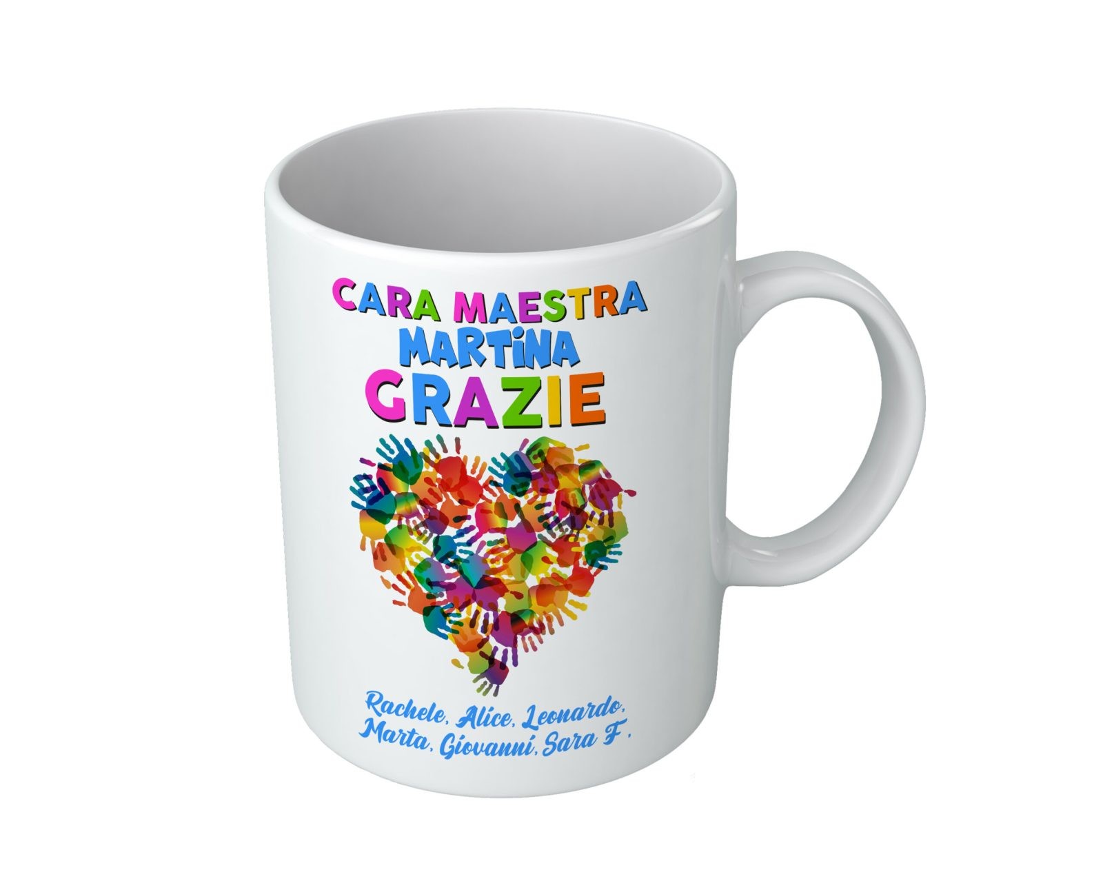 Tazza Maestra con Nomi e Classe Personalizzabili, sorprendi un’insegnante speciale con un regalo pensato appositamente per lei! Inserisci la tua personalizzazione tramite il pulsante PERSONALIZZA.
