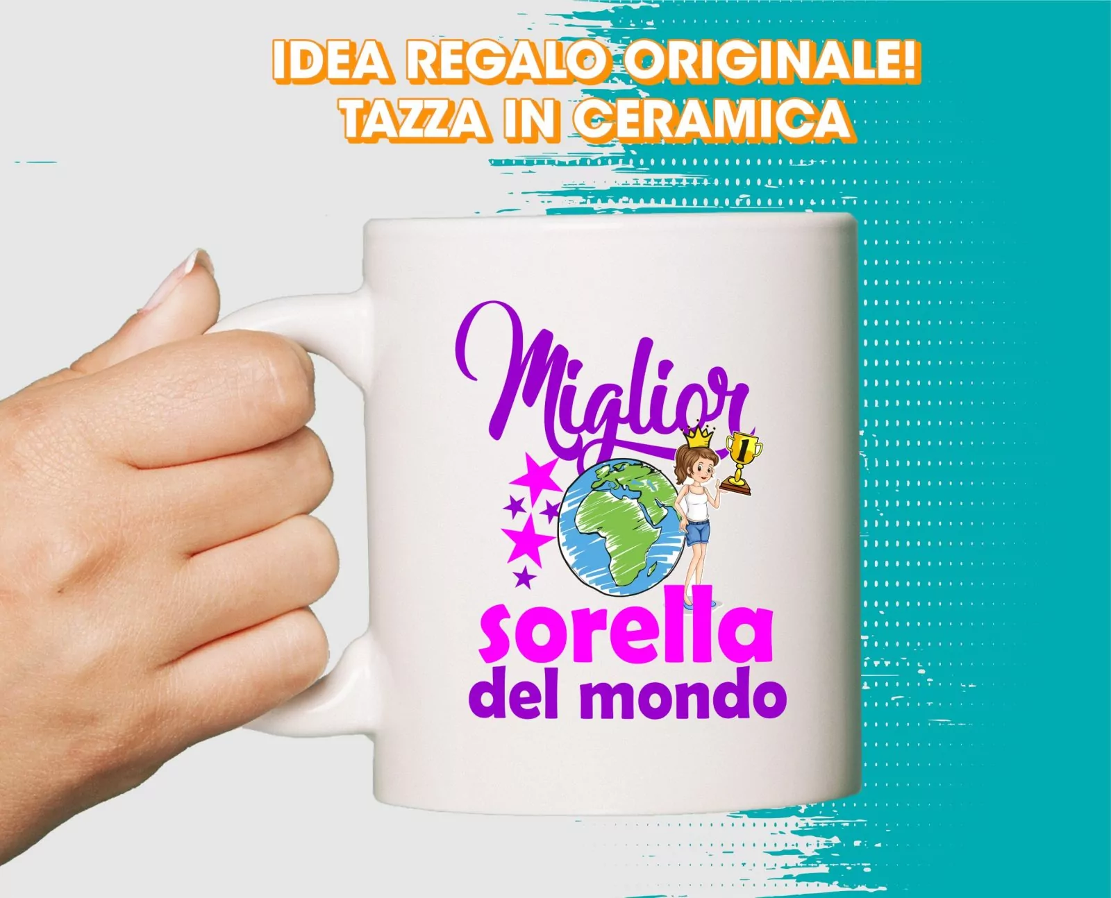 Tazza Sorella – Miglior Sorella del Mondo – Regali Sorella – Tazza in Ceramica Sorella – Idea Regalo Sorella – Tazza Compleanno Sorella – Regalo Compleanno Sorella