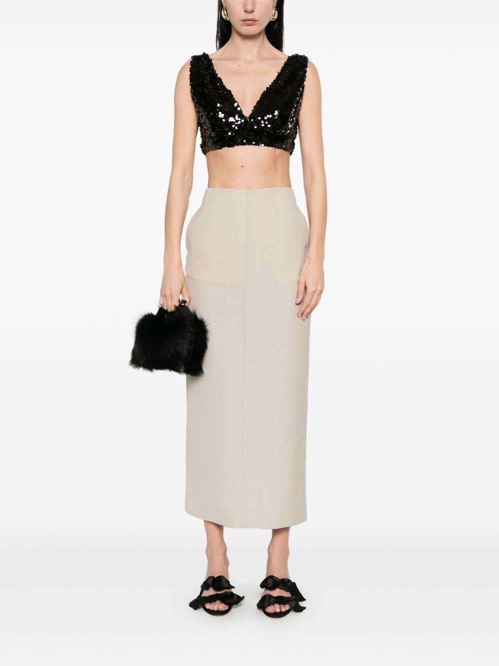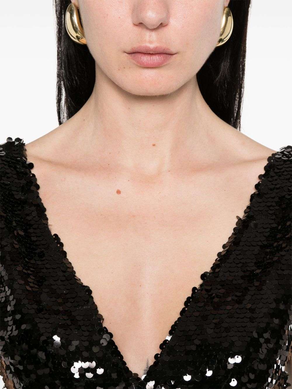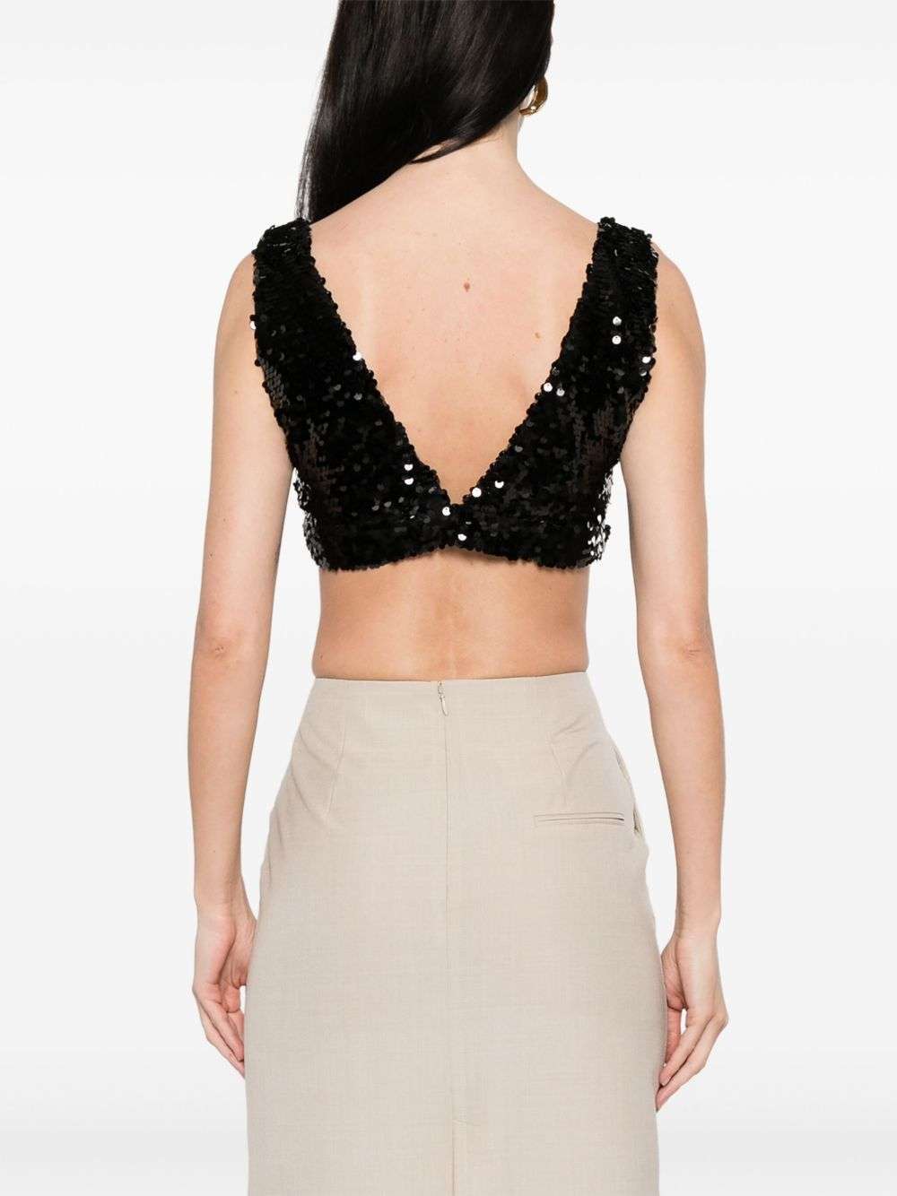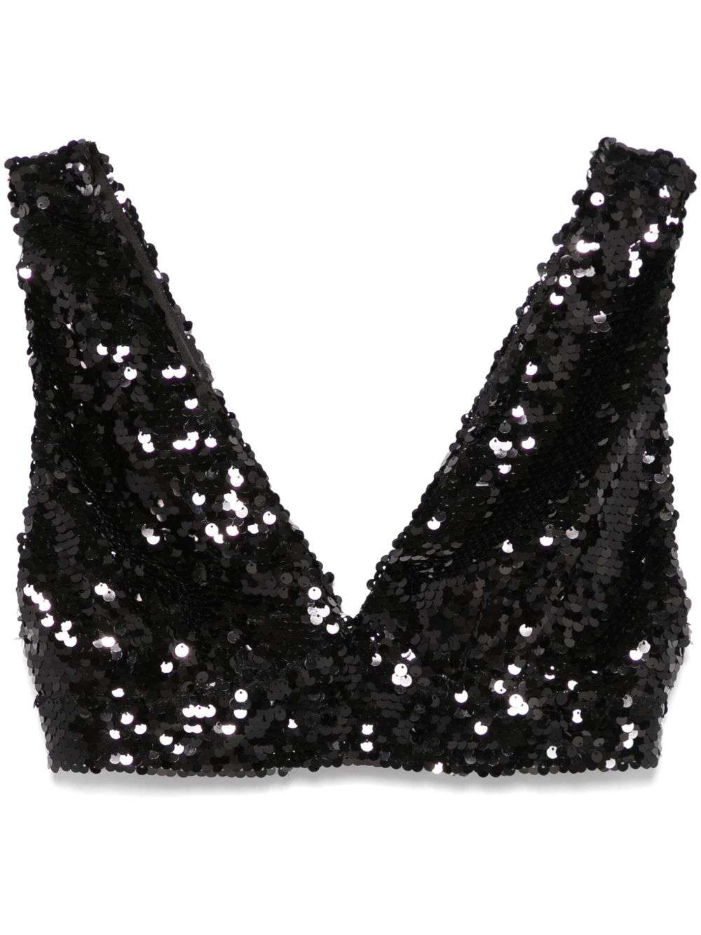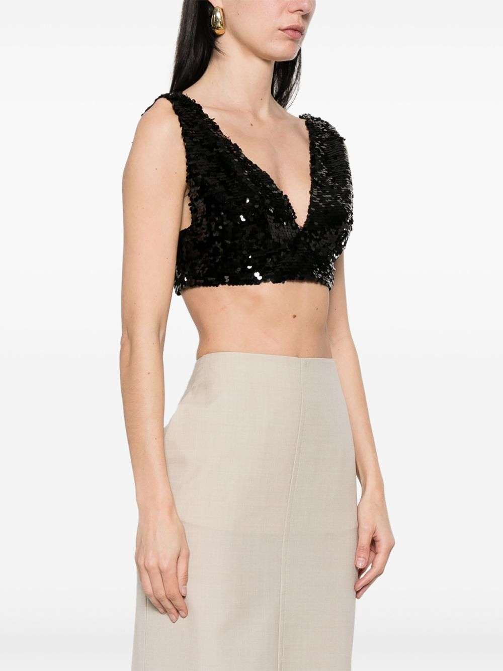 Micro top in paillettes con scollatura molto femminile. Ideale per party look o per occasioni speciali.