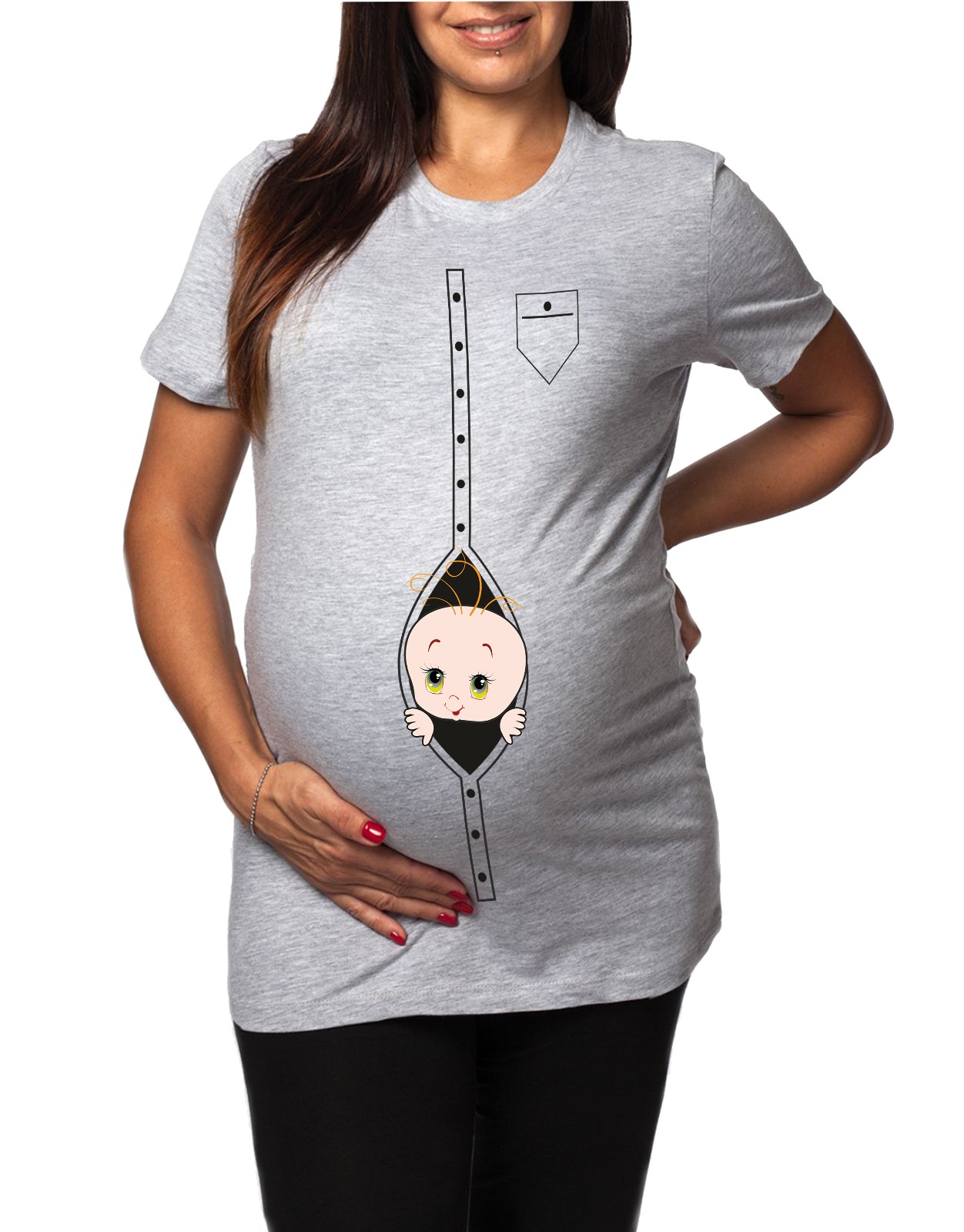 Tshirt Lunga da Donna Ideale per il Premaman – Bimbo che esce dalla camicia – Maglietta Premaman Divertente – Regalo Futura Mamma – Idea Regalo per Futura Mamma