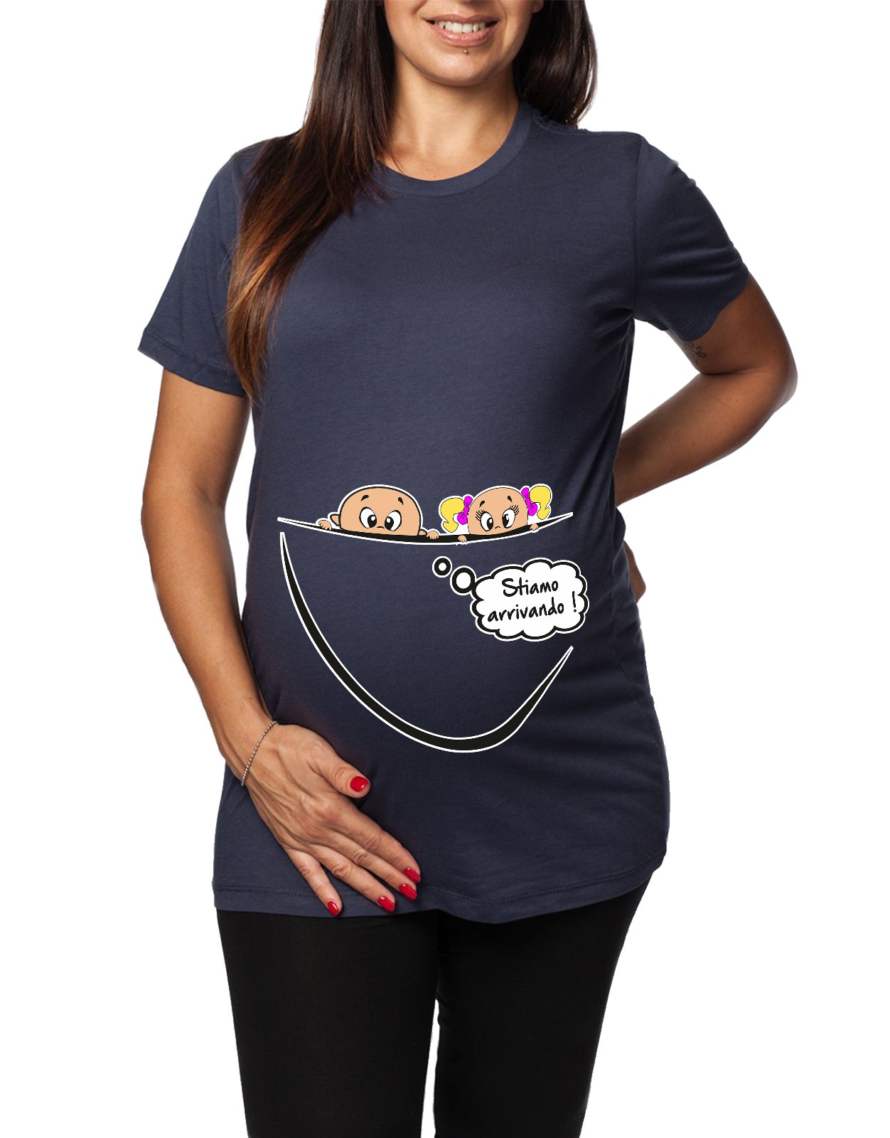 Tshirt Lunga da Donna Ideale per il Premaman -Gemelli- Stiamo arrivando bimbo e bimba – Maglietta Premaman gemelli maschio e femmina – Regalo Futura Mamma