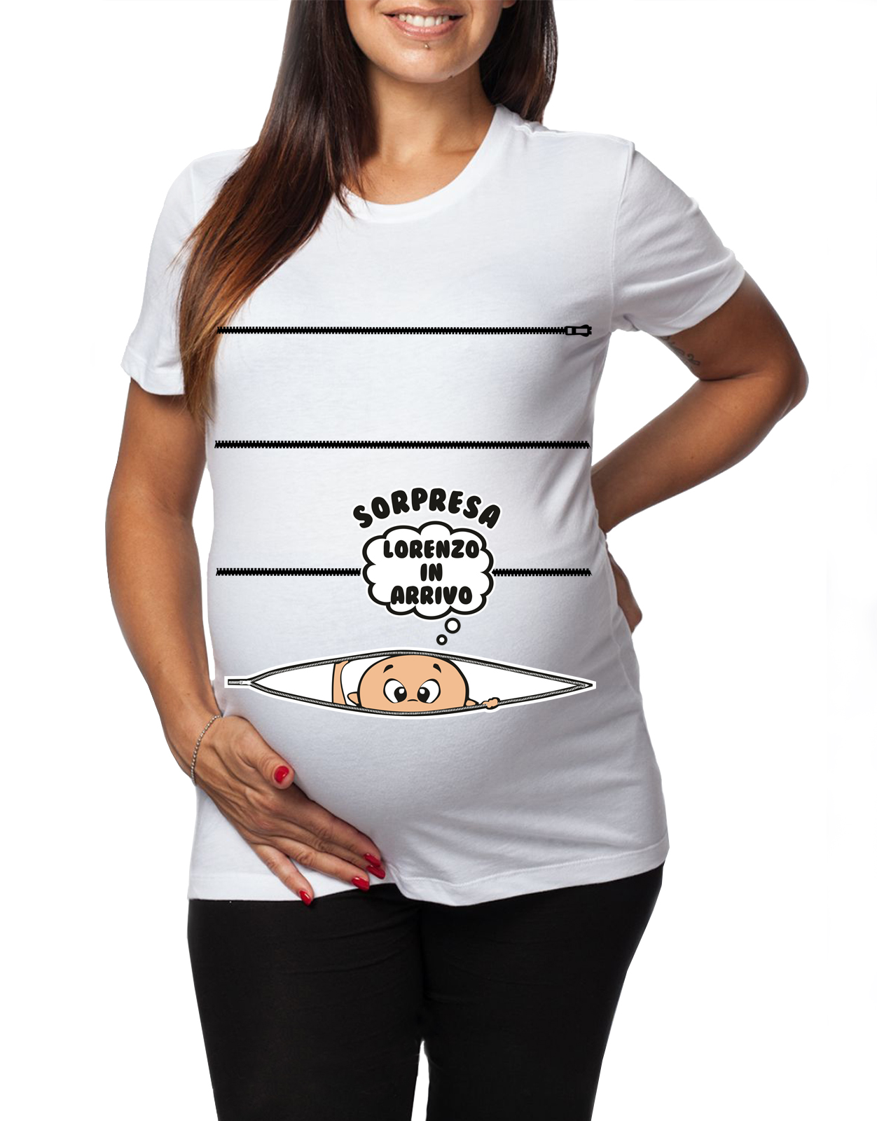 Tshirt Lunga da Donna Ideale per il Premaman – Personalizza nome – Maschietto Sorpresa Lorenzo In Arrivo –