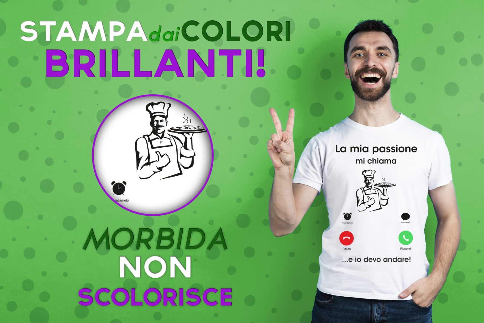Le Nostre Magliette sono in puro cotone. Realizzate in Stampa Diretta Su Tessuto, assicurano morbidezza e comfort. Grazie a questa tecnica di stampa la Maglietta risulterà leggera e traspirante.