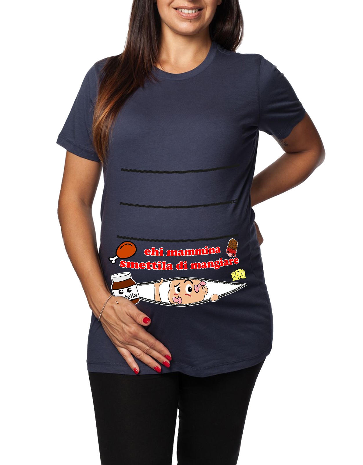 Tshirt Premaman Donna – Bimbo Zip – Ehi Mammina – Smettila di mangiare – Tshirt Gravidanza Divertenti – Idee Regalo Futura Mamma