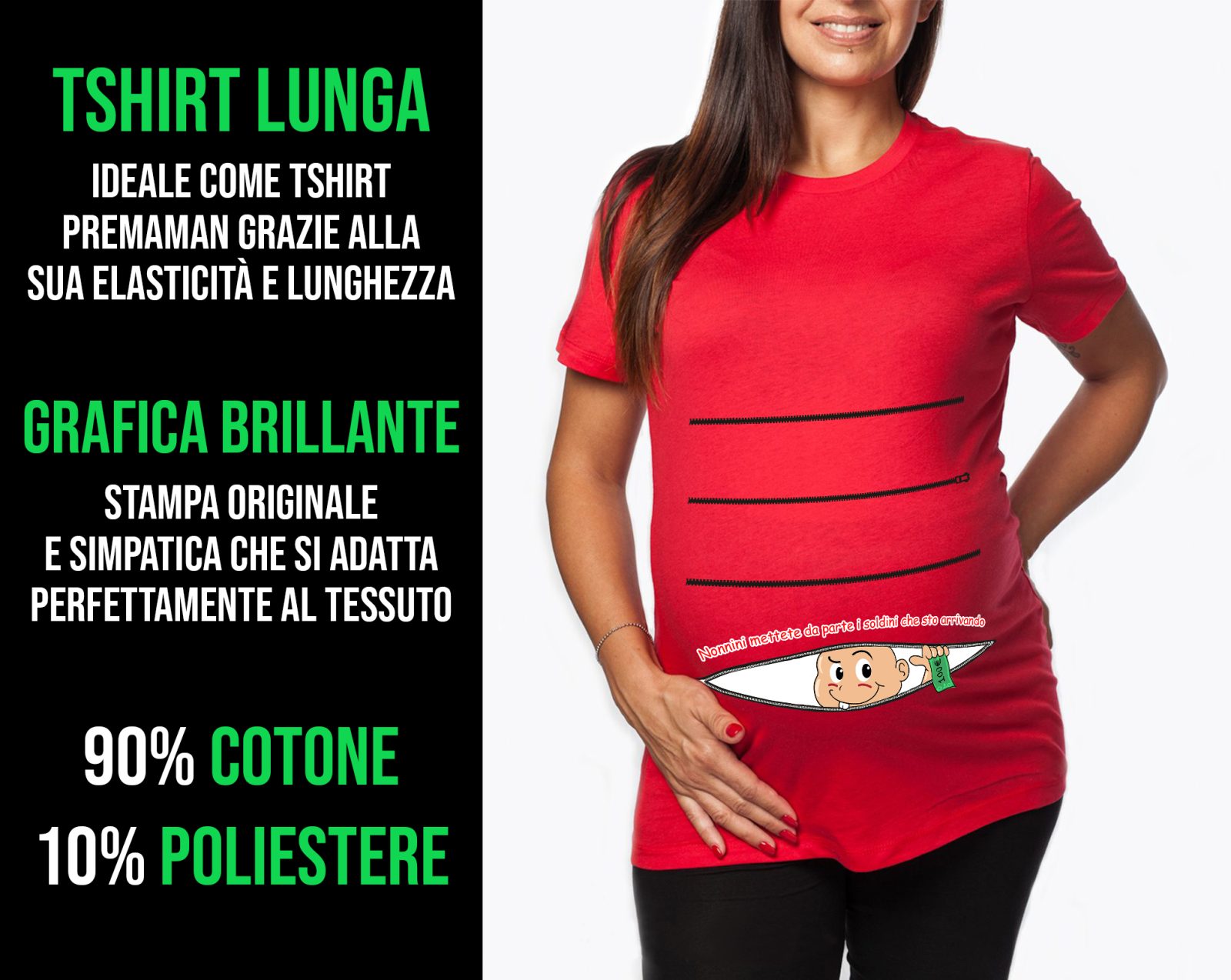 Ideale come Maglietta per il Premaman : Tshirt classica ma leggermente piรน lunga, ideale per coprire meglio le forme della Gravidanza. Tessuto e Rifiniture di Alta Qualitร .