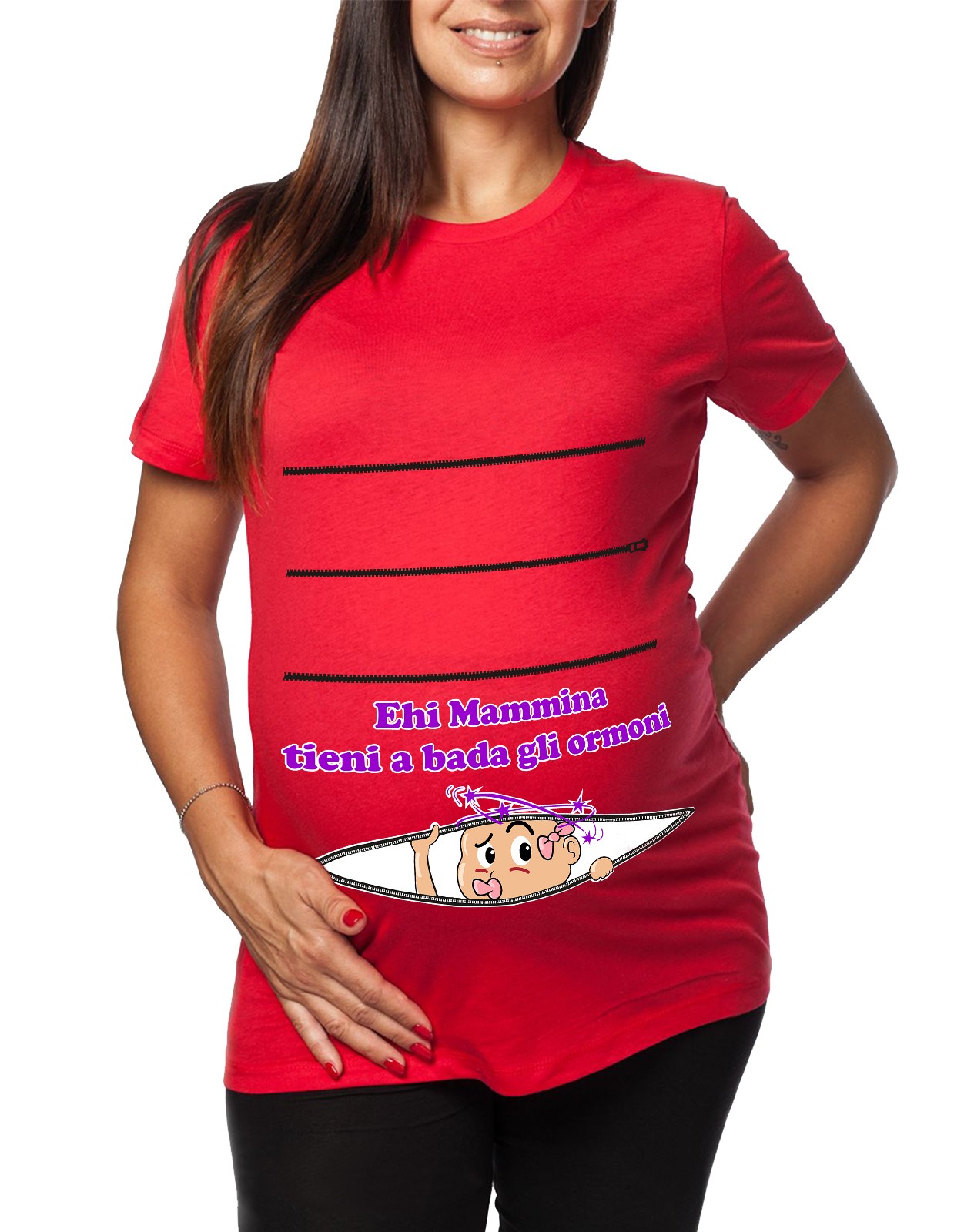 Tshirt Premaman Donna – Bimbo Zip – Ehi Mammina – Tieni a Bada gli Ormoni – Tshirt Gravidanza Divertenti – Idee Regalo Futura Mamma