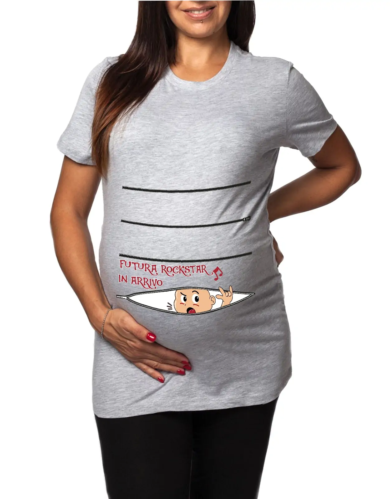 Tshirt Premaman Donna – Bimbo Zip – Maschietto – Futura Rockstar in Arrivo! – Tshirt Gravidanza Divertenti – Idee Regalo Futura Mamma