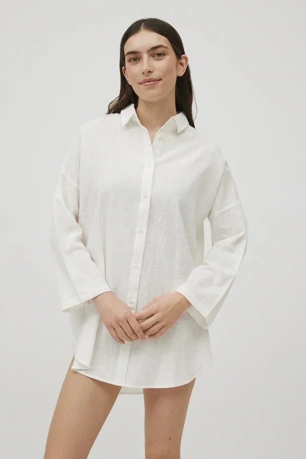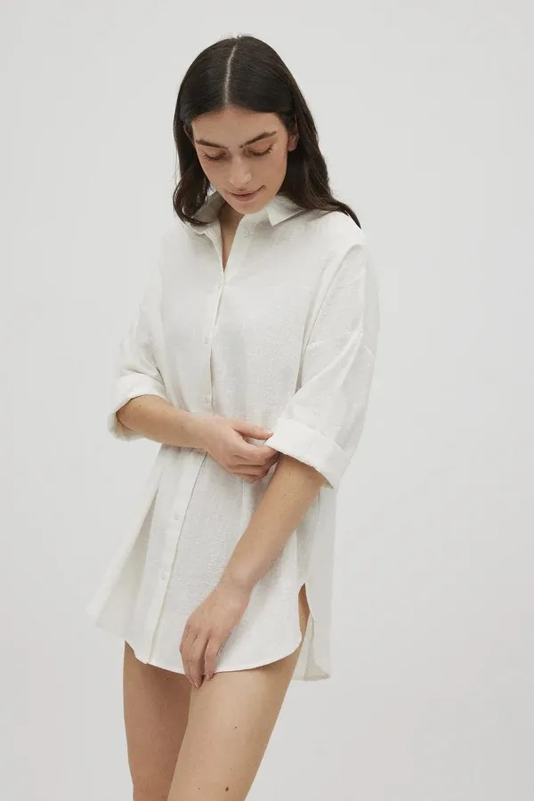 Camicia a maniche lunghe abbottonata davanti. Capo basic che non potrà mancare nel tuo armadio quest’estate. Realizzato in cotone al 100%. 100% cotone